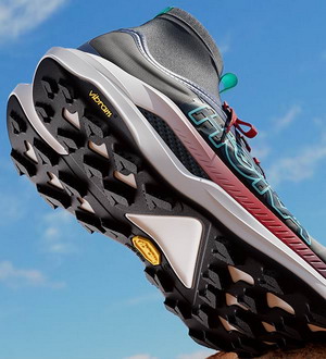 Přepracovaný tvar a umístění výstupků na podrážce Vibram® Megagrip Litebase zajišťuje lepší trakci, zatímco dynamický nárt umožňuje chodidlům roztáhnout se, jak ubíhají kilometry.