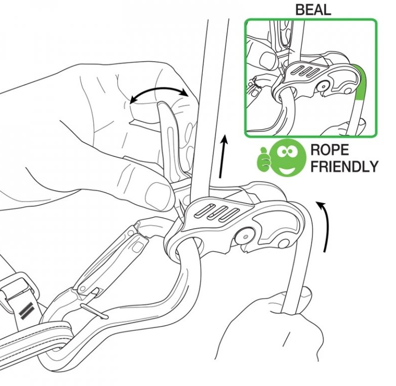 Je kompatibilní s jednoduchými dynamickými lany od průměru 8,5 mm až po 10,5 mm. Nejvhodnější průměr lana pro pohodlné komfortní ovládání jistítka je 9 – 10 mm. K zajištění jistítka dochází za pomocí připojovací karabiny až po založení lana. Během provozu tedy není možné, jakkoliv jistítko otevřít. Součástí je i malý šroubek,