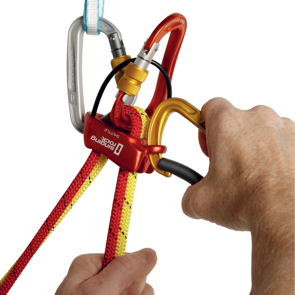 SHUTTLE je všestranné jistící a slaňovací zařízení navržené pro široké spektrum lezeckých situací. Precizně tvarované drážky zajišťují plynulé a spolehlivé tření při použití s tenkými i silnějšími lany. V režimu guide umožňuje pohodlné a bezpečné jištění jednoho nebo dvou druholezců. Pro spouštění je zařízení vybaveno okem, do kterého lze vložit karabinu nebo smyčku pro zvýšení páky a zajištění plynulého a kontrolovaného spouštění pod zatížením.
