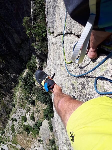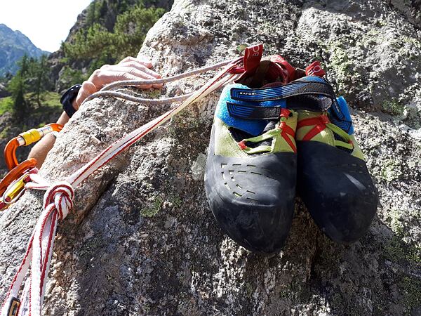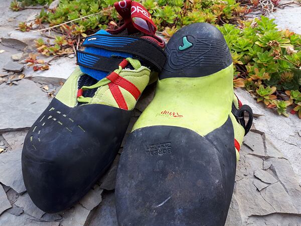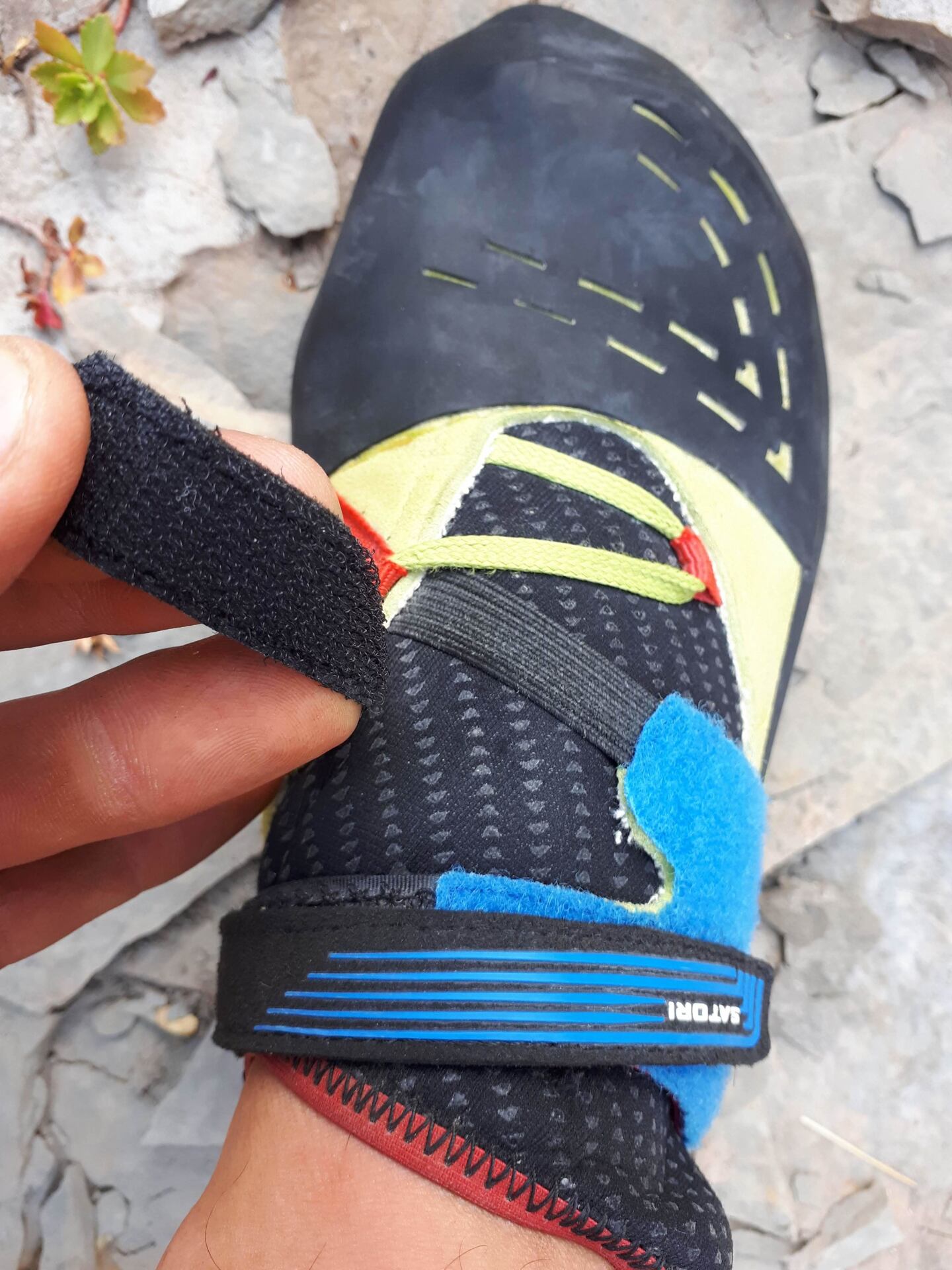 Hodí se tak i pro lezce se širším chodidlem. Špička má gumovou obsázku i svrchu, krásně tak drží při „špičkování“ a je tvarově stálá. Lezečky Satori se jednoduše nazouvají, rychle a dobře se na noze utahují, díky netradičně řešenému, ale funkčnímu zapínání pomocí suchého zipu.