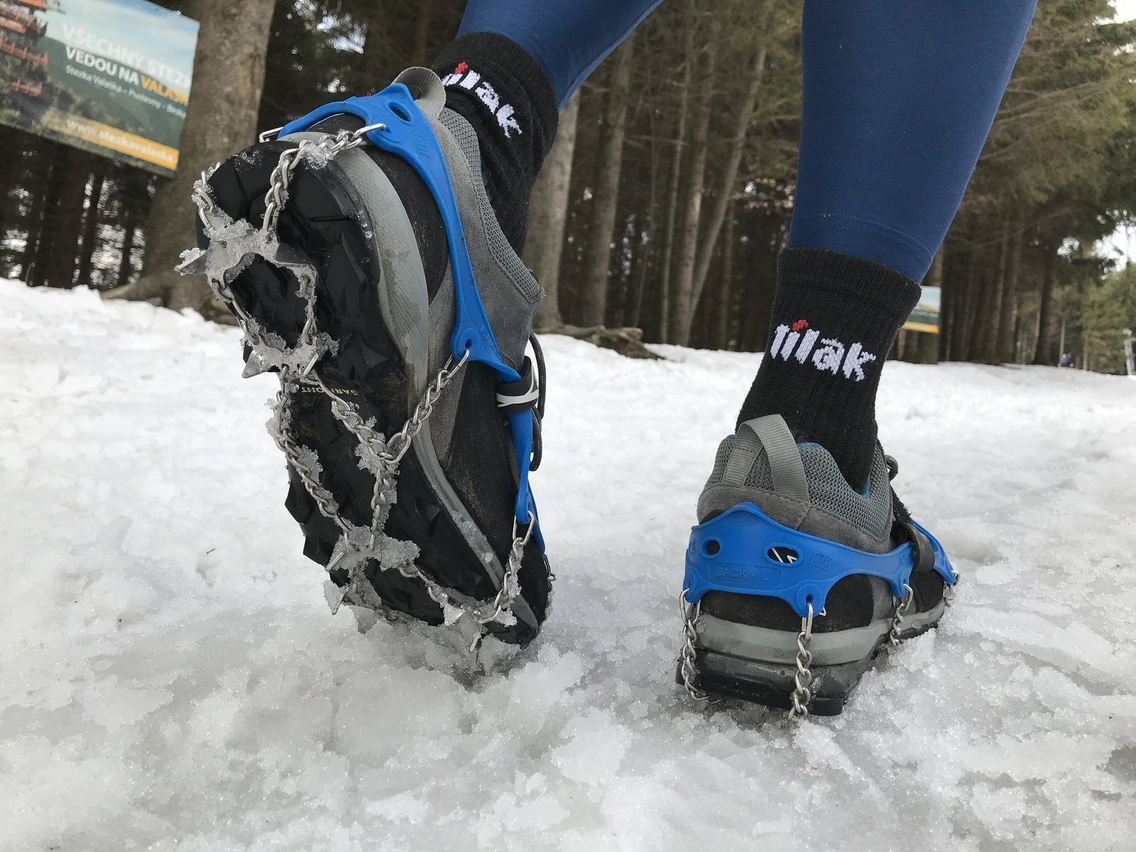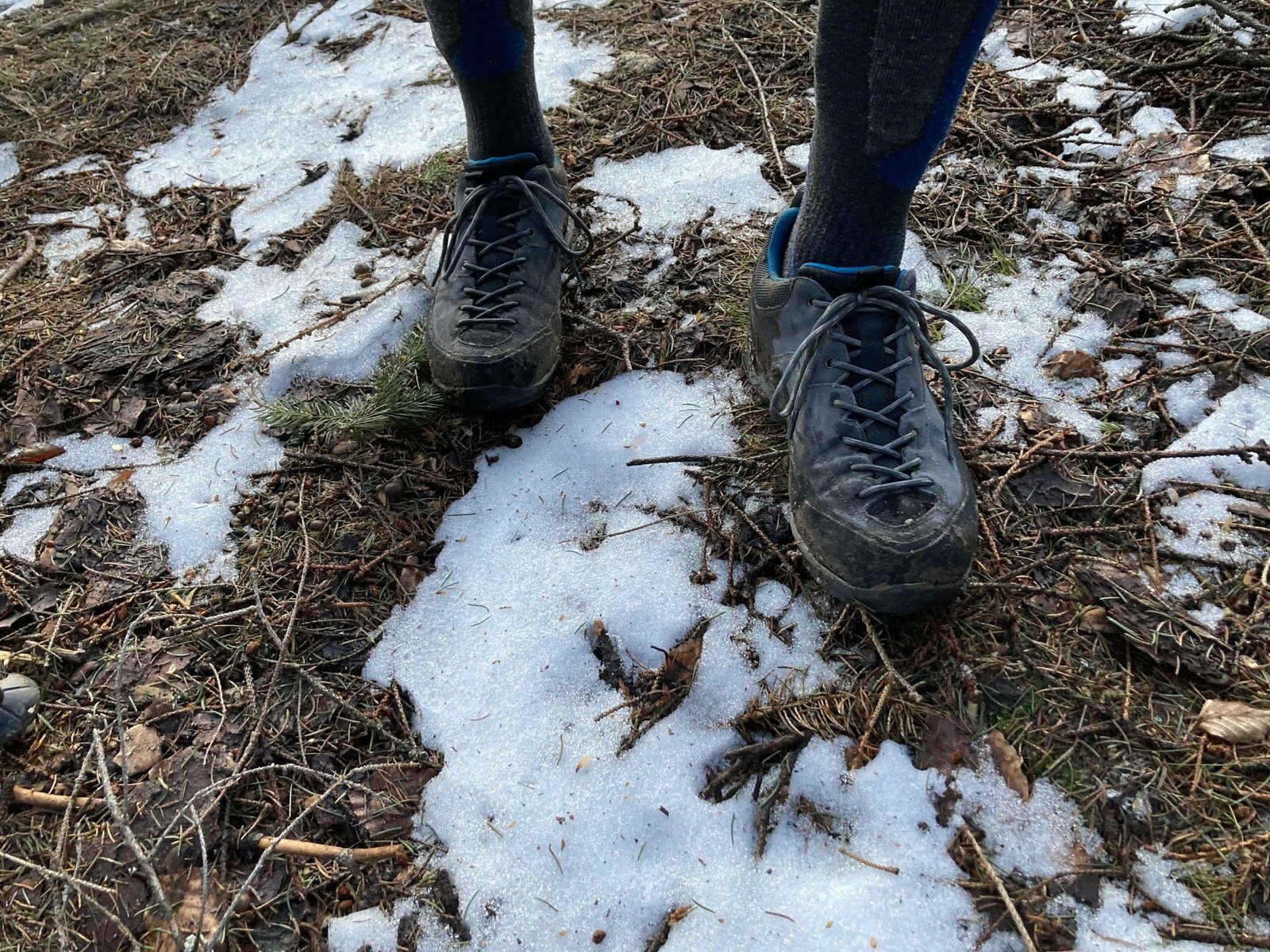 Boty s nesmeky v jarním terénu (led/rozbředlý sníh)