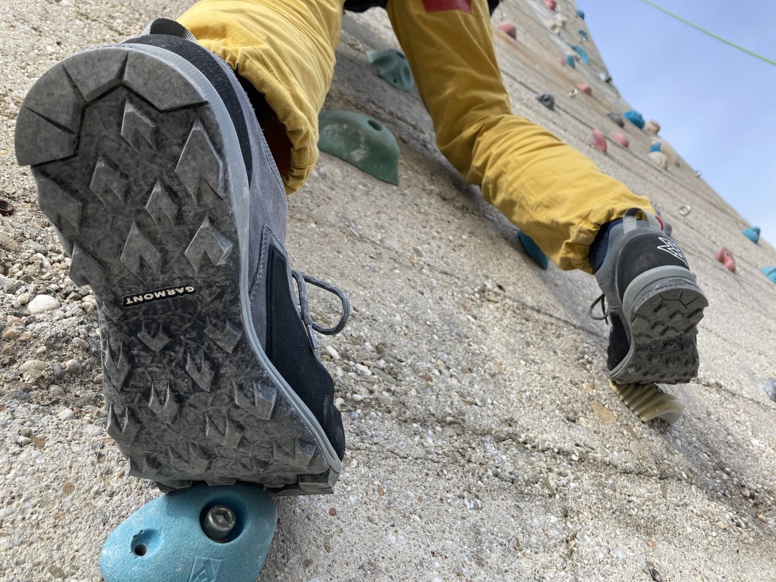 Membrána bot byla prověřena i v proudu potoka, a to po dobu 2 minut - obstála, ponožky zůstaly v suchuJelikož jsou boty určené i pro vysokohorskou turistiku, kde se nevyhneme kontaktu se skálou a lezením, rozhodl jsem se je prověřit na umělé stěně. Samozřejmě, lezečky jsou lezečky, ale v lezečkách neujdete několika kilometrové tratě. Proto mě boty mile potěšily, když jsem s nimi bez obtíží přelezl 6+ na umělé stěně.