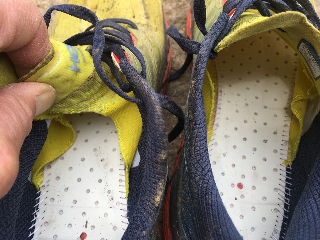 Svrchní sendvičová síťovina je navíc z recyklovaného polyesteru a po 5měsíčním běhání nevykazuje žádné opotřebení! Svršek jako celek je samozřejmě bezešvý. Polyuretanová nalaminovaná obsázka je tentokrát umístěná úsporněji, a to jen na místech, kde dává opravdu smysl, ať už kvůli ochraně prstů před možným poraněním o kameny nebo tam, kde zabraňuje nadměrnému průniku vody dovnitř boty. Plní i funkci stabilizační, což je u trailovek rozhodně podstatné.
