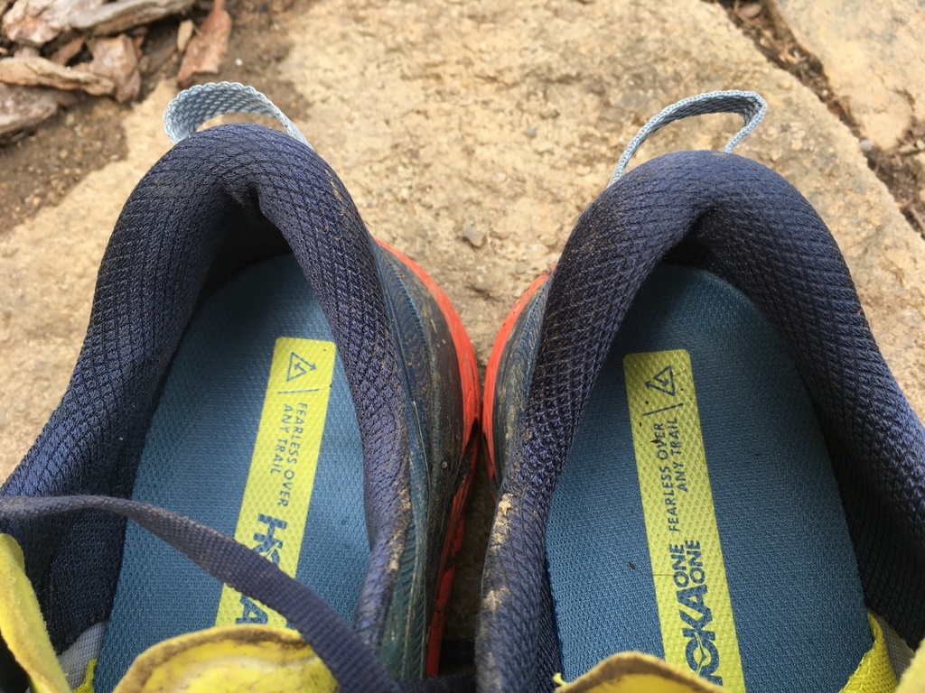 Opatek je pevný, jak má u správné trailovky být, ale uvnitř komfortně polstrovaný. Zvenku na něm najdete praktické popruhové oko, které usnadňuje obouvání i zouvání. To by mohlo být reflexní, aby se na botě objevil bezpečnostní prvek tohoto charakteru.