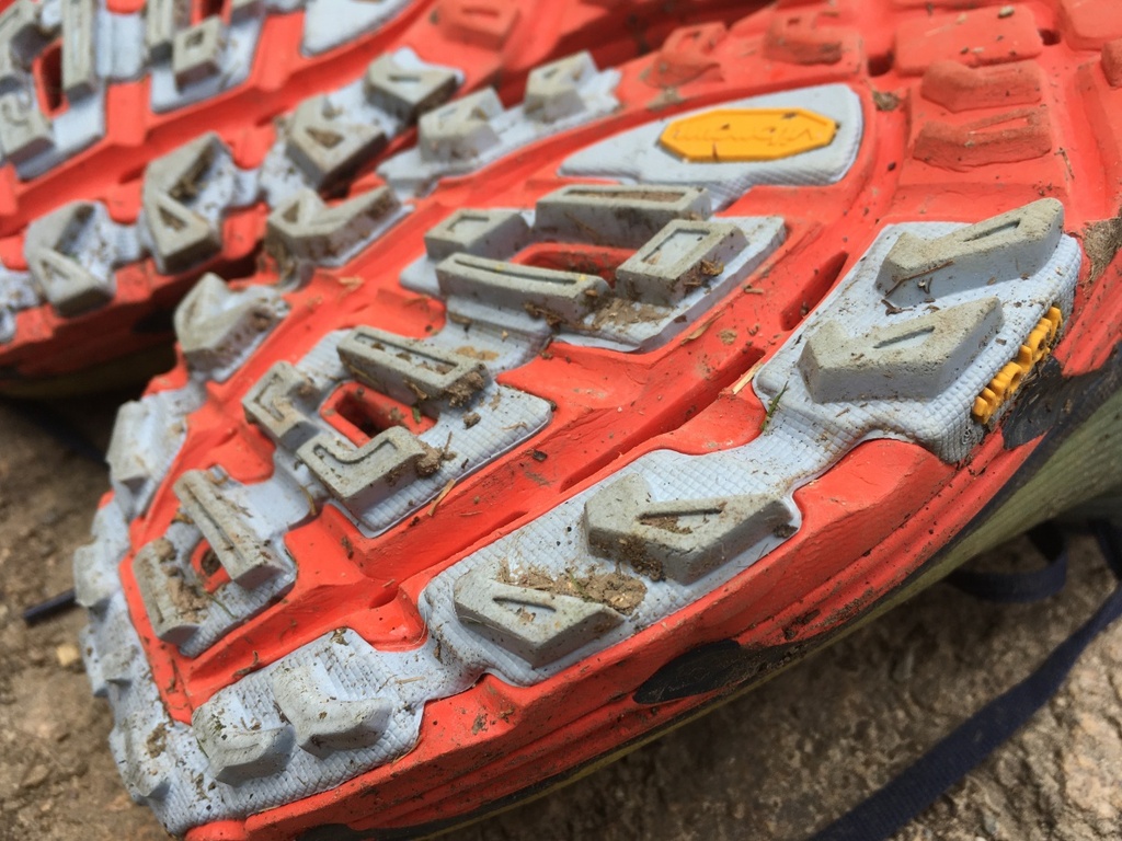 Mafate Speed 3 jsou trailovky do toho nejdivočejšího terénu, bláta, kamení, kořenů, krkolomných seběhů. Tam jsou ve svém živlu, tam maximálně využijete širokou oporu, kterou podešev poskytuje. Tam vás podrží agresivní hluboký vzorek z přilnavé gumové směsi Vibram. Jednotlivé gripy jsou optimálně daleko od sebe, na špičce a patě jdou proti sobě, poskytují výbornou trakci a oporu na rovině i při seběhu a bláto se v nich nedrží.