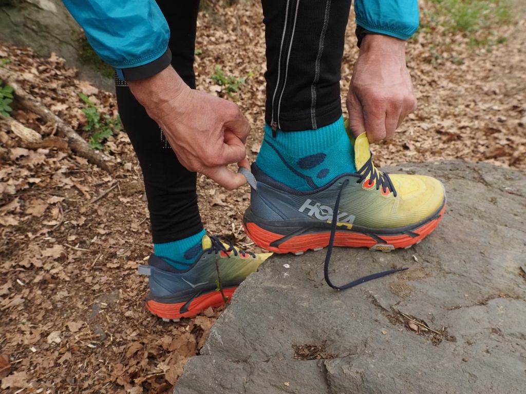 Hoka Mafate Speed 3 působí možná mohutně, ale rozhodně nejsou neohrabané nebo neovladatelné. Myslím, že na to, že se jedná o nejtlumivější model značky Hoka, v nich lze stále ještě relativně dobře vnímat terén a rozhodně pří zátěži smysluplně pošetříte svůj pohybový aparát.