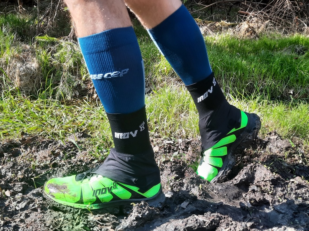 Přes prodyšný svršek voda při nabrání postupně opět odchází ven. Díky zvýšené TPU obsázce, která vede od špičky, jsem vodu nabral jen v opravdu hodně promáčeném terénu nebo bahně. Při prvním použití originálních návleků jsem dost zápasil se zaháknutím háčků do „poutek“ na stranách boty. Doporučuji si předem doma poutka trochu roztáhnout.