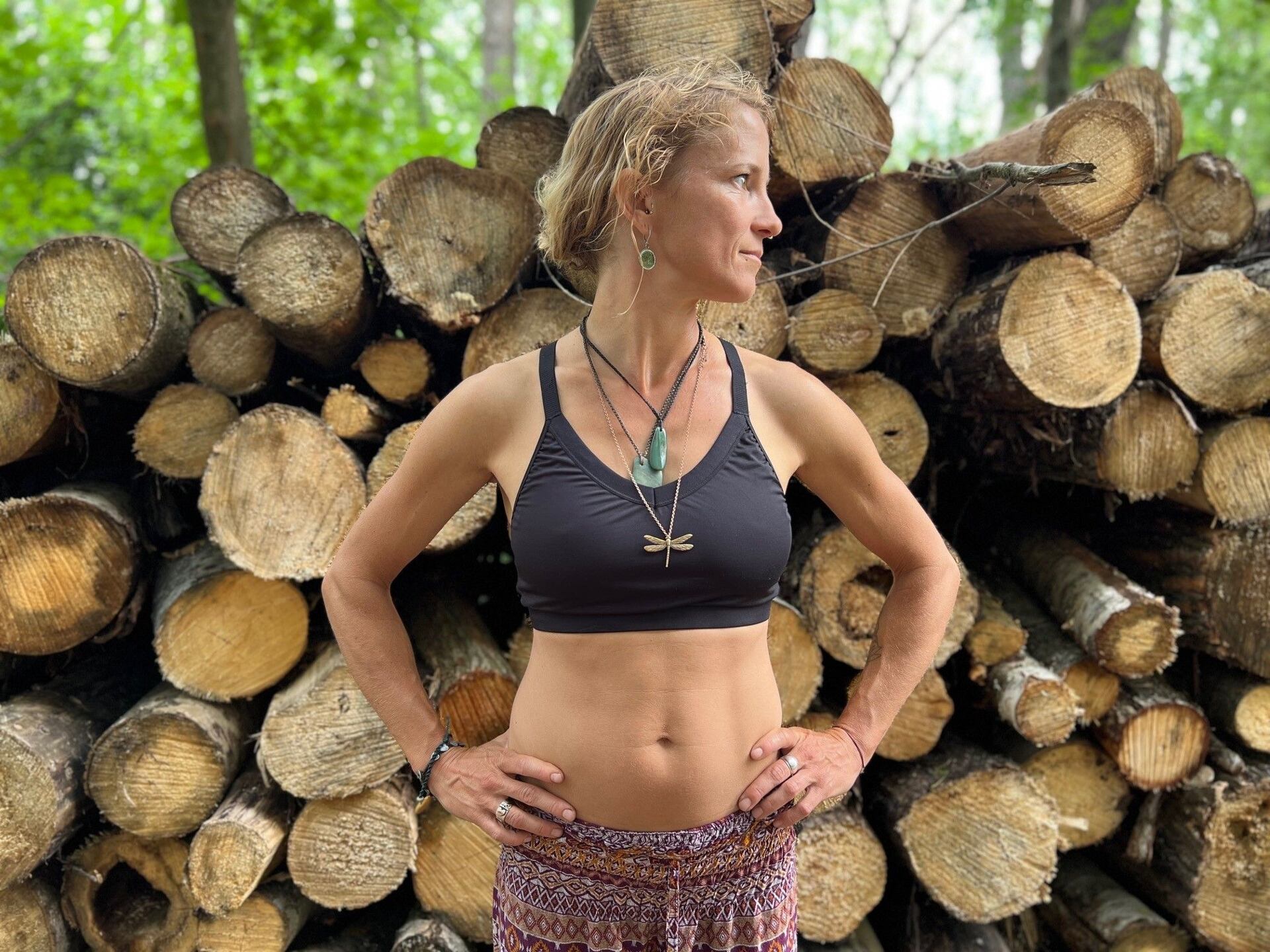 Po porodu už nikdy nebudu patřit mezi sportovce, co běhají jen ve sportovní podprsence. A tady je hlavní vysvětlení, proč na fotografii je někdo jiný než já. Já testovala a sestra byla jako modelka. Je lektorka jógy a učena je těmi nejlepšími z Indie a Bali. Mimojiné si podprsenku párkrát zapůjčila a byla s ní moc spokojena.