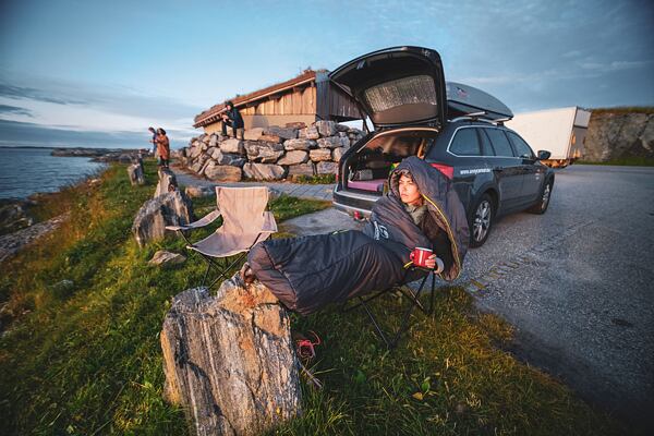 První kousek, který jsme od Hannahu měli možnost otestovat, byl spací pytel Sherpa 160 MT-P. Jedeme do Norska, počasí může být všelijaké, a proto bylo super dostat právě tento spacák, který se označuje jako „třísezónní“, s teplotním rozsahem MAX 5, COM 0, LIM -16. Ta čísla znamenají teploty a v tomto případě vězte, že ve spacáku se budete nejlépe cítit v teplotách těsně nad nulou a využijete ho od jara do podzimu. Přes léto můžete použít spacák rozepnutý jen jako deku, aby vám nebylo horko. Osobně chci tento model otestovat i v zimě, při spaní v autě by mohl poskytnout dostatečný komfort.