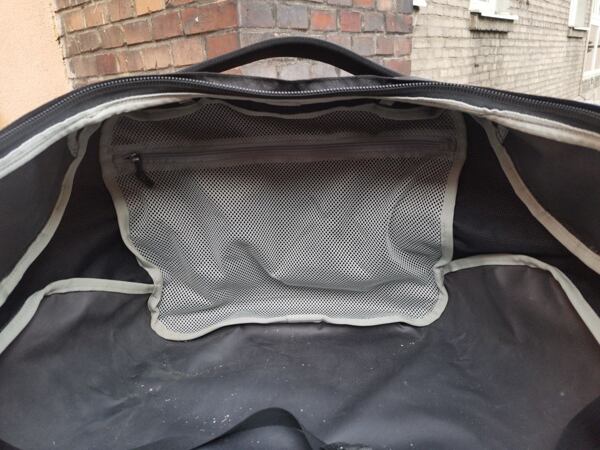 Největší kapsa, je samozřejmě ta hlavní, která zabírá největší část objemné tašky. Přístup je z vrchu, zipem ve tvaru U. Dá se odklopit celá vrchní stěna, aby se dovnitř daly jednoduše vkládat opravdu objemné věci. Přes celý vnitřek vedou dva stahovací popruhy, aby byl náklad dobře ukotven. Duffle je vybaven ještě dalšími čtyřmi kapsičkami.