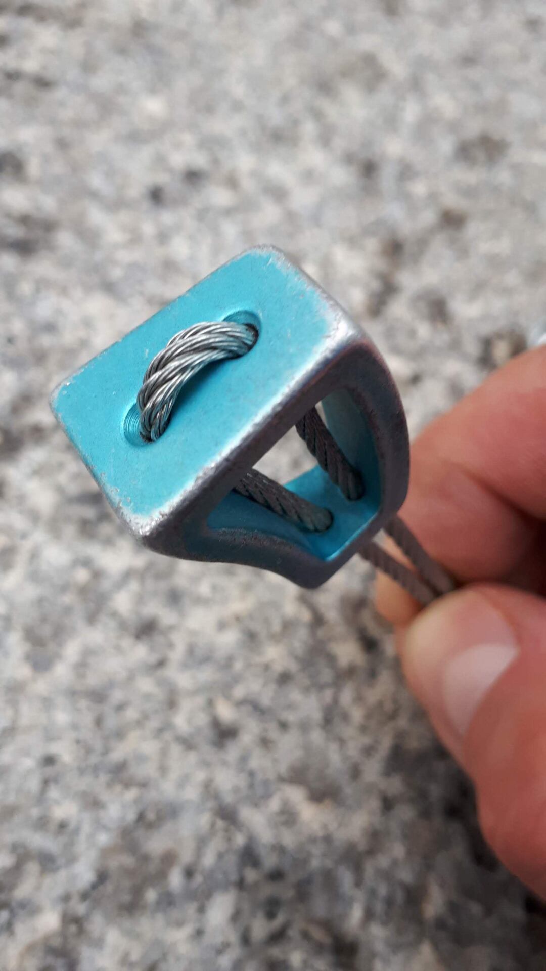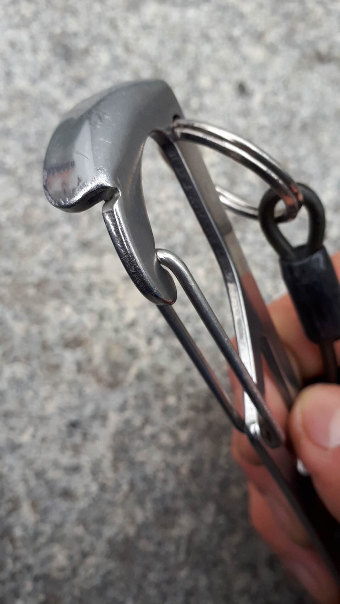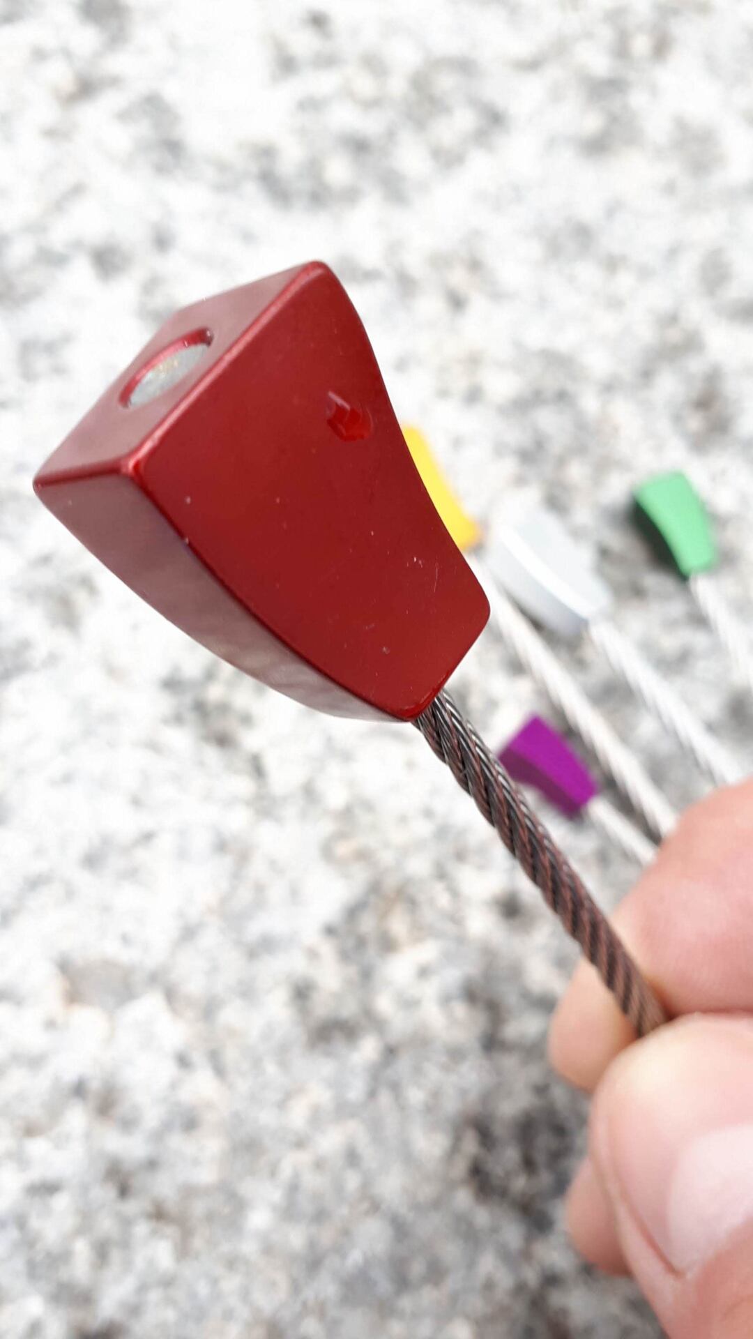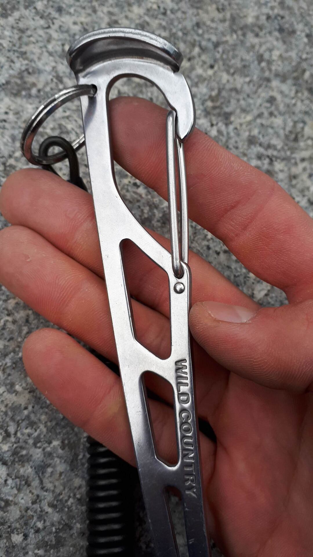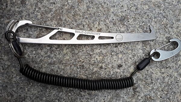 Šťáradlo Wild Country má několik předností, které jsem u jiných výrobků nenašel. Je ze silného plechu a neohýbá se tak při páčení. Na tom konci, který držím v ruce, je plech ohnutý a vytváří plošku, do které můžu tlouct (dlaní, plochou stranou kyblíku, menším plochým kamenem), když vklíněnec nechce ven. Dá se dobře pověsit na sedák a má pojistku proti nechtěnému upuštění – z ocelového lanka vyrobený „gumicuk“. Ten mi nejdřív připadal směšný. Zjistil jsem ale, že je praktický a dost dlouhý, abych mohl šťáradlo držet v natažené ruce.