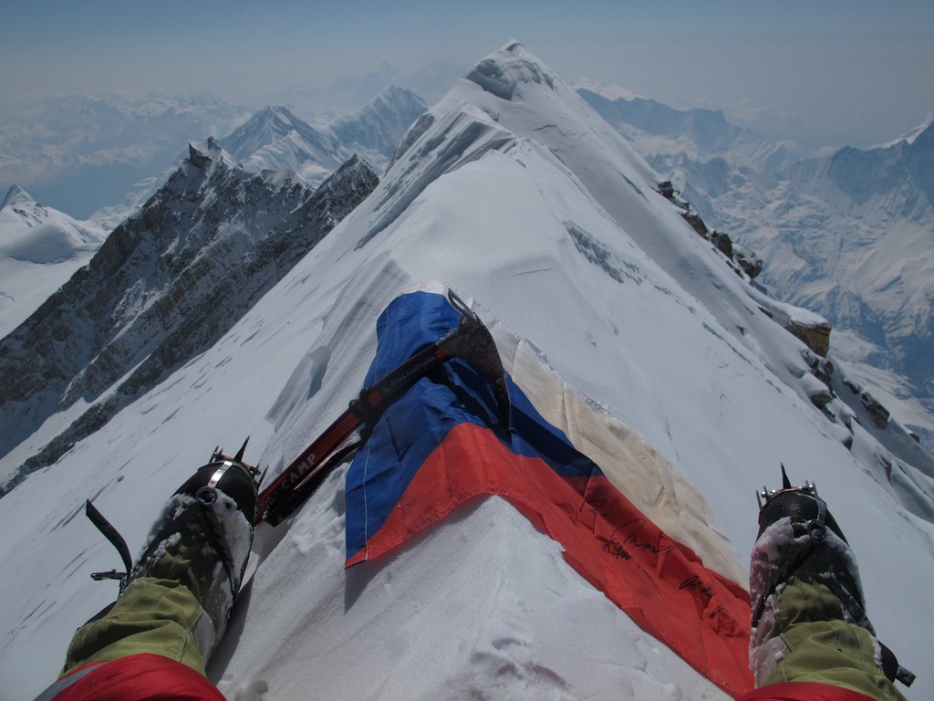 A po nějaký době jsem se tam dohrabal i já. Byl jsem pátým Čechem na vrcholu této desáté nejvyšší hory světa. Za fotku tímto znovu děkuji španělskému spolulezci.