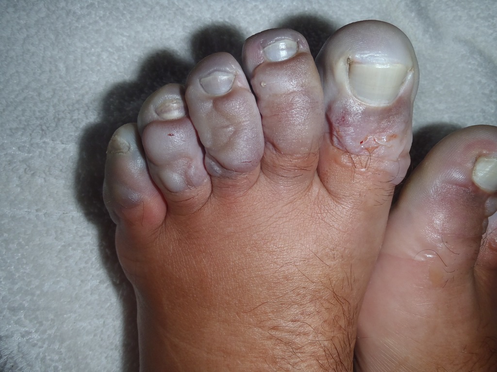 Takhle to vypadalo, než to zafáčovali v nemocnici v hlavním městě Nepálu. V Čechách to následně zčernalo a nějaký kousky musely pryč.