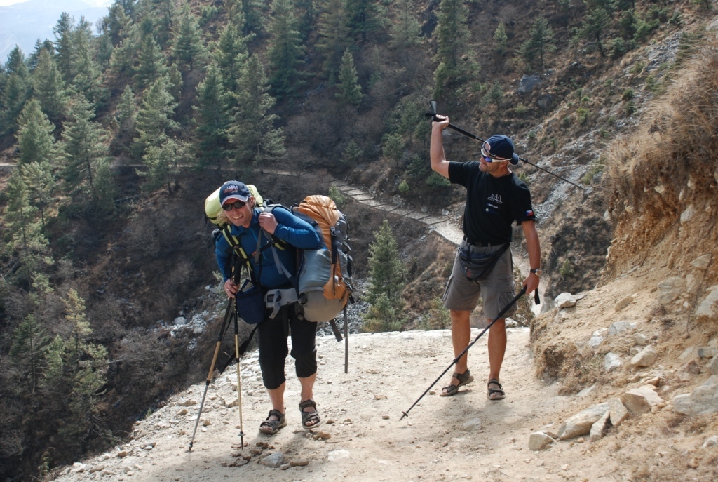 Aklimatizace na Lhotse, kam se dostanete tzv. Everest trekem, nám umožnila vzít s sebou doprovod. Aspoň na první část výletu. Takže kromě mé přítelkyně Mirči nás doprovázelo mnoho dalších kamarádů. Bylo tam moc veselo a krásně nám to s taťkou (Radek – přejmenoval ho tak náš mladý půvabný doprovod, nemající úctu nejen ke stáří), ubíhalo.