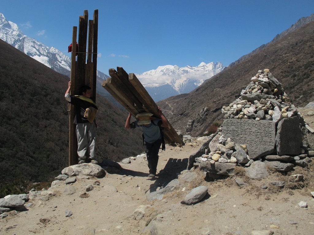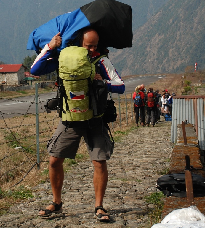 Neskutečné náklady nosí na zádech místní nosiči – etnikum Šerpů. Já nebyl ani schopen jejich zátěž přizvednout.