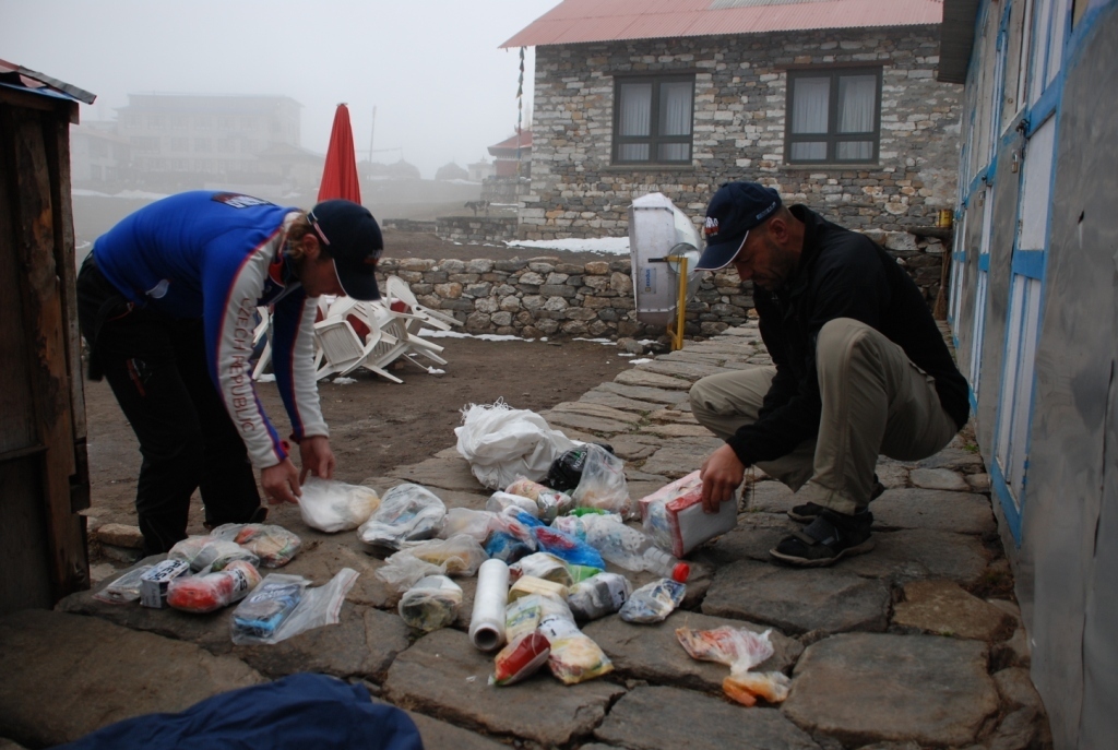 Rozdělit věci na ty, co budeme potřebovat na aklimatizační výstup na Lhotse a na ty, co poletí rovnou na Annapurnu. To byl oříšek na mnoho hodin.