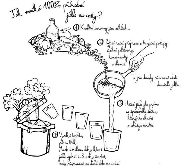 Je to vlastně "hotové jídlo" pouze zavařené a vy už ho jen ohřejete. Je to tzv. "meal, ready to eat" (MRE) cestovatelská strava. Nevýhodou je, že je celkem těžké (200-400 g). Proto ho vezmete tam, kde se nějaké to kilo ztratí. Buď jedete autem nebo si nesete jen jedno jídlo apod.