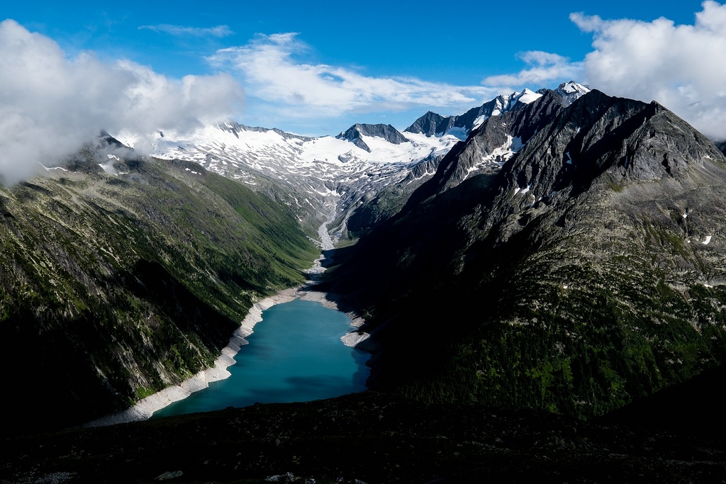 Zillertal je také místem, kde lze relativně snadno, po turistických stezkách vyšlápnout nad hranici 3000 metrů. Jednou z takových dobře dostupných třítisícovek je Hoher Riffler (3231 m). Nejkratší trasa k němu začíná u přehradní nádrže Schlegeisspeicher, kam lze díky alpské silnici pohodlně vyjet až do výšky 1750 metrů. I tak vás čeká na vrchol solidní převýšení. Jaké štěstí, že je v půlce výstupové trasy horská chata Friesenberghaus (2498 m).