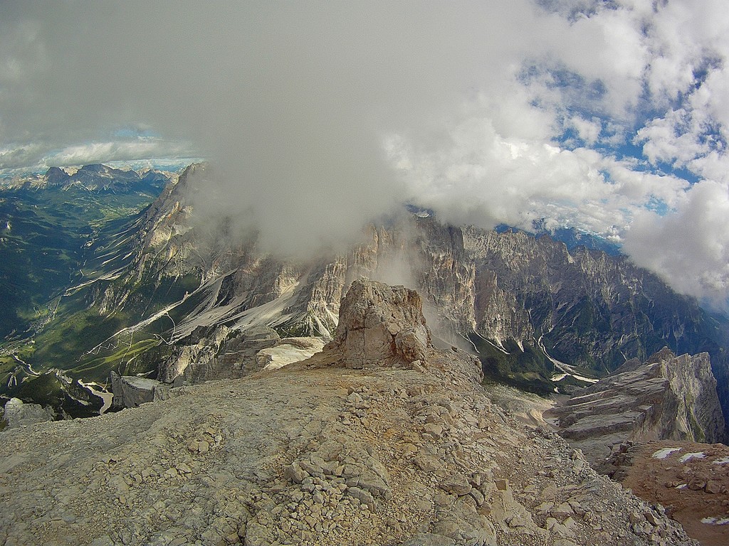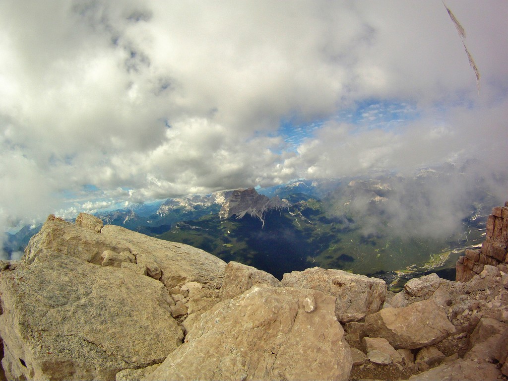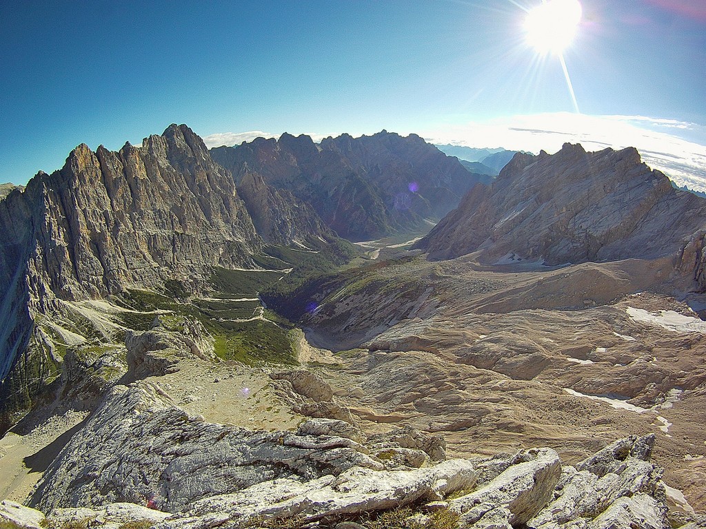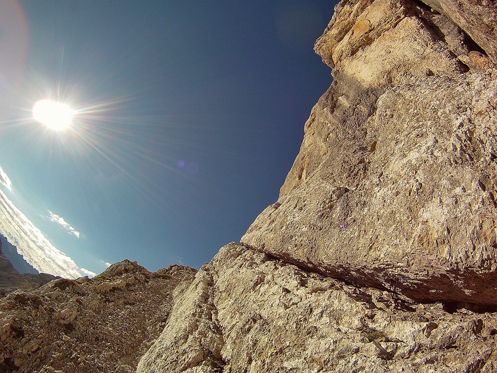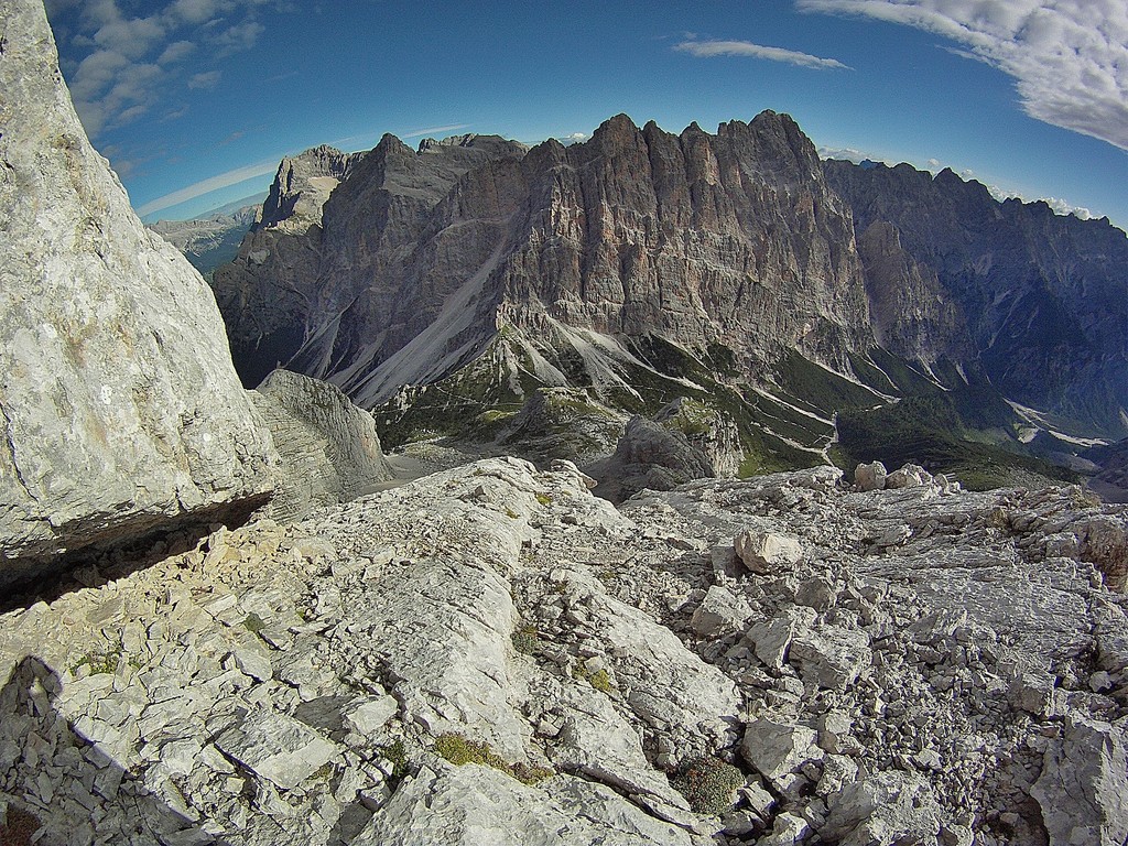 Výhledy jsem měl při lezení opravdu parádní. Při výstupu jsem nepotkal žádného člověka, a to je v Dolomitech docela vzácnost. Byl jsem rád, že jsem tady nepotkal davy turistů jako při výstupu na Piz Boe, kde jsem byl dva dny před tímto výstupem. Tam Italové chodí v teniskách.