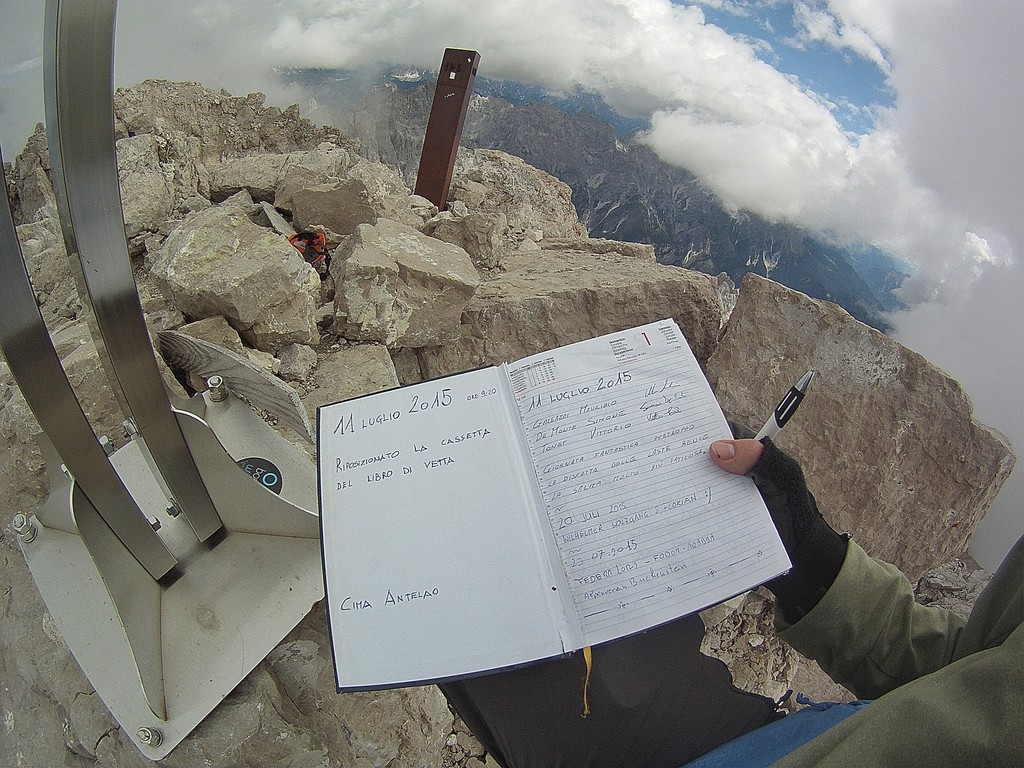 Na konci ještě krátký výšvih a konečně jsem dorazil na vrchol Monte Antelao . Měl jsem obrovskou radost, protože to byl opravdu náročný výstup, jak fyzicky, tak i na orientaci v terénu.