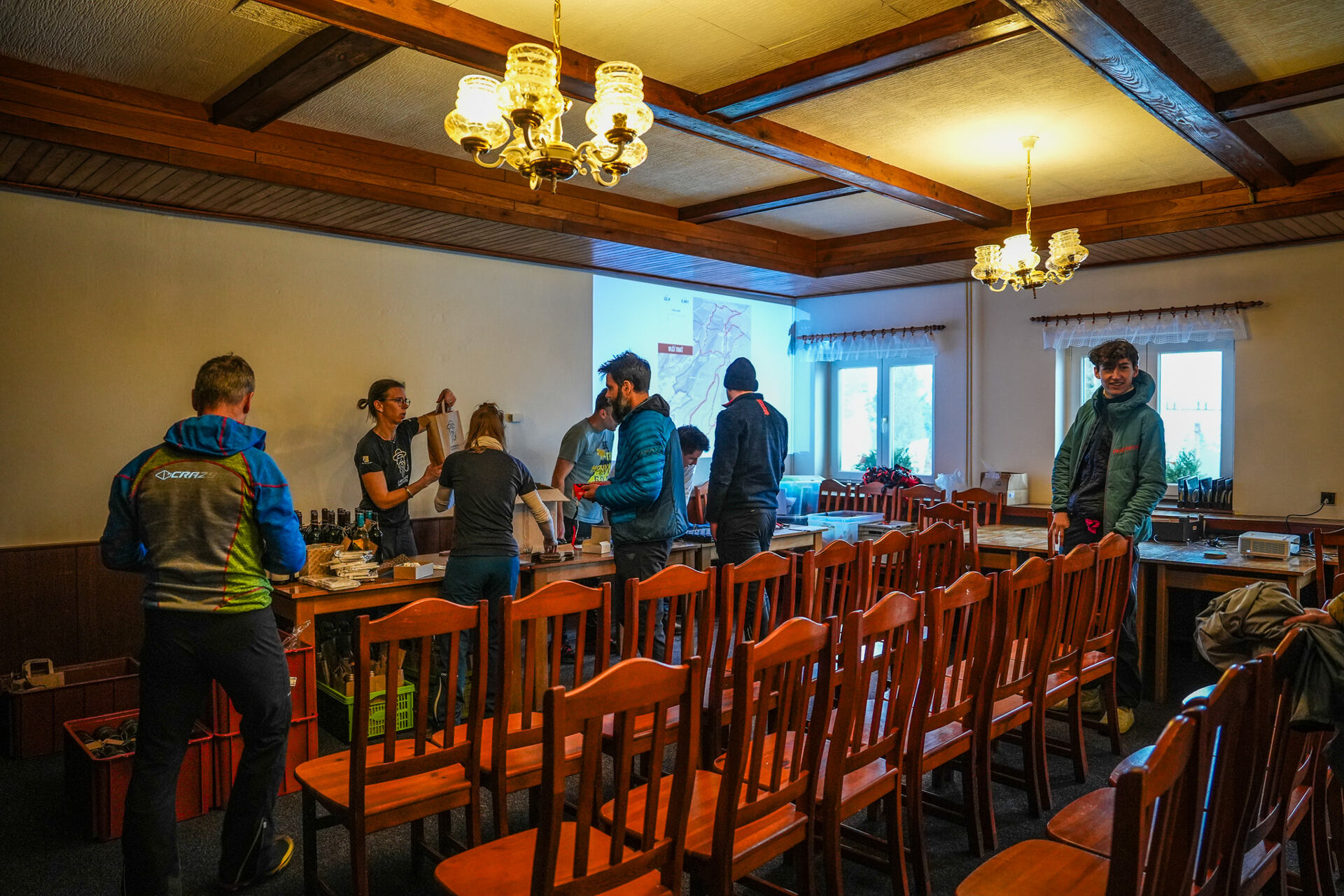V suterénu chaty byly připraveny prostorné šatny pro ženy a pro muže. V 11 hodin se v restauraci konal brífink před závodem, kde zazněly nejdůležitější aktuální informace o jednotlivých tratích a organizaci závodního dne.