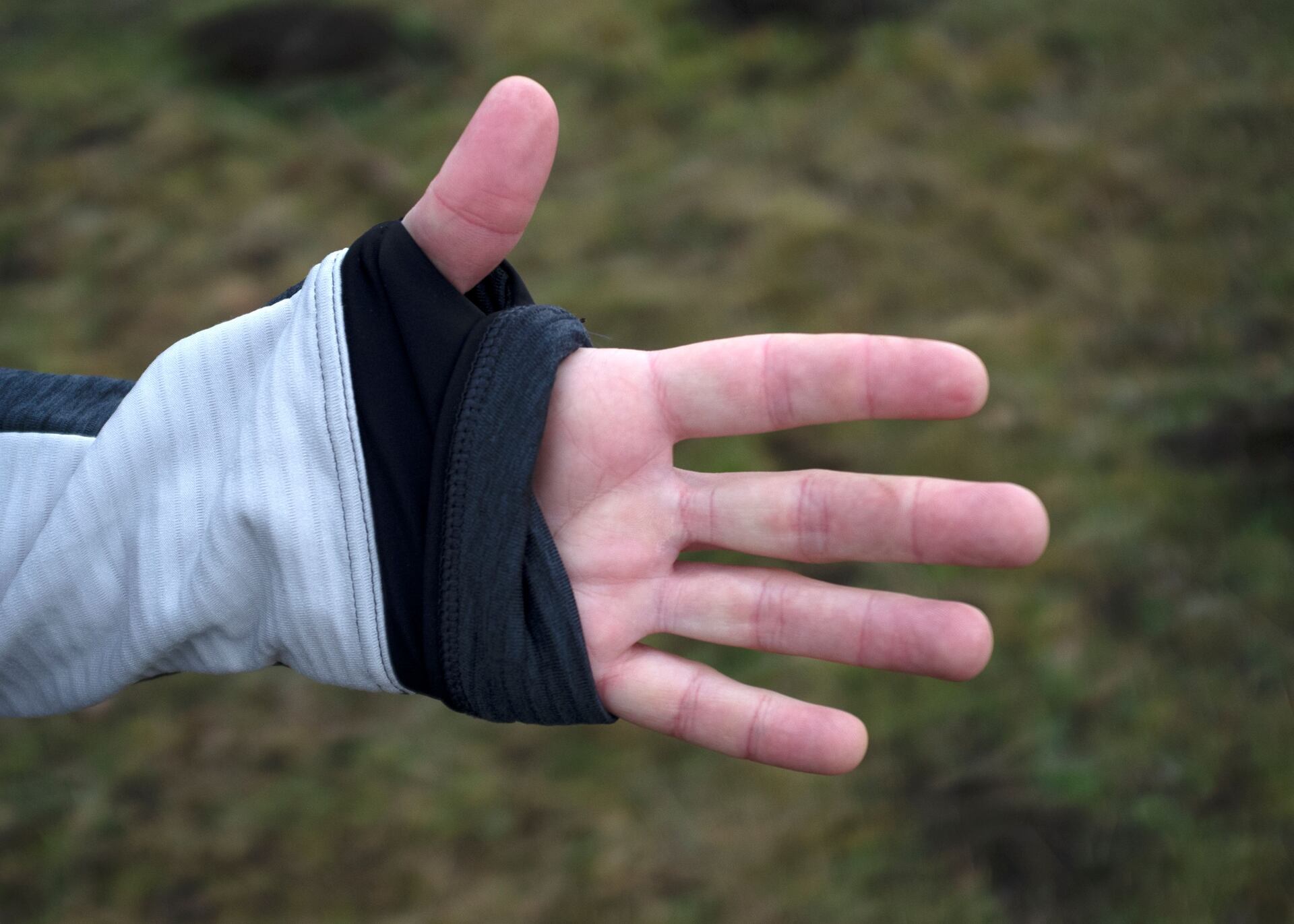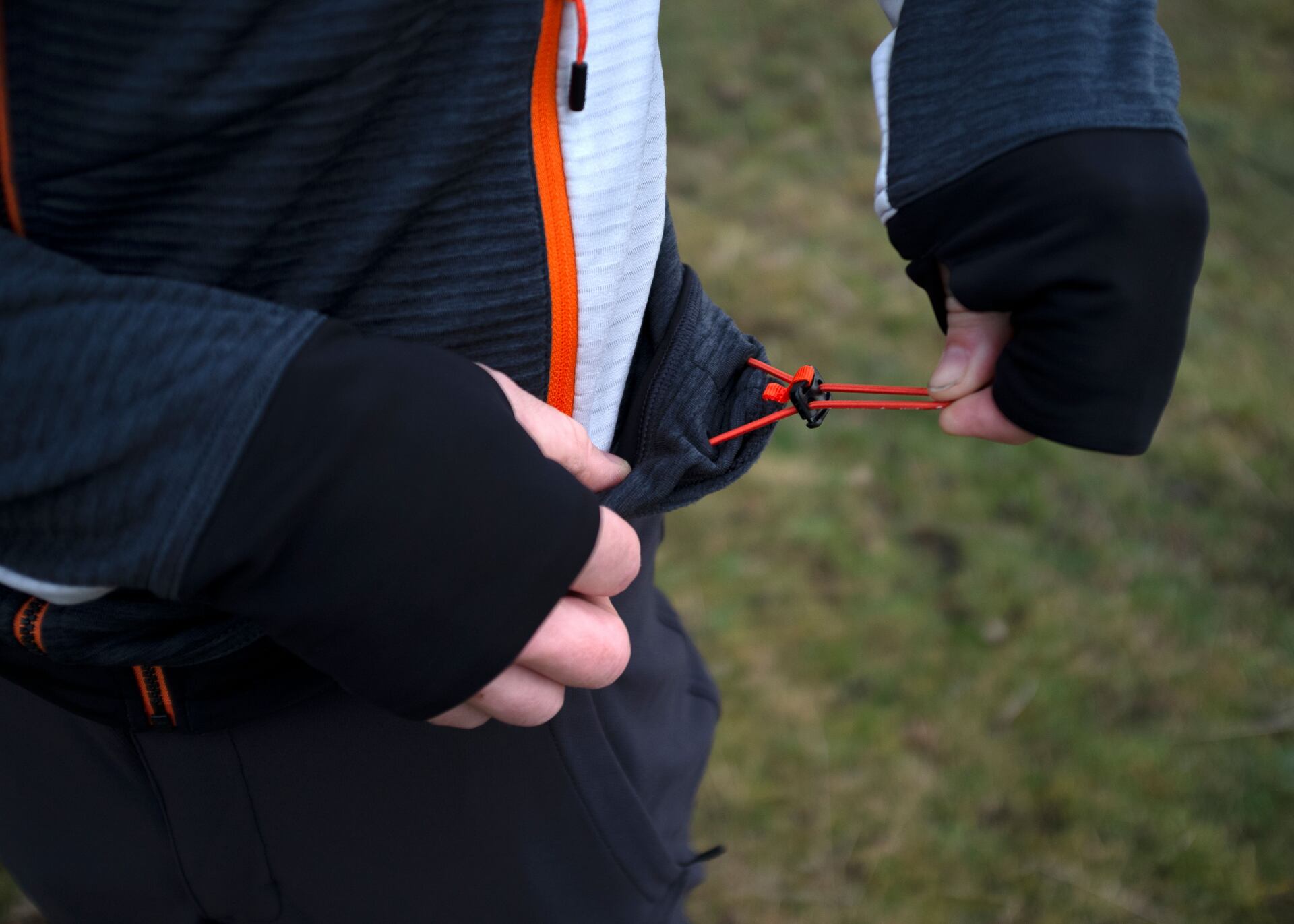 Rukávy jsou zakončené manžetami podšitými Warmshell materiálem s otvory na palec