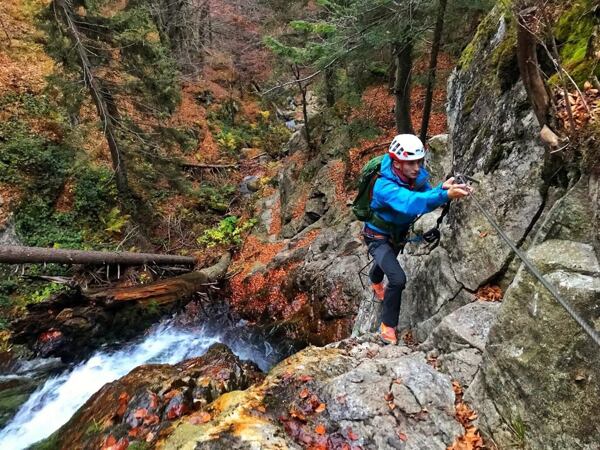 Pokud se člověk chce oddat i těžším outdoorovým aktivitám, jakou jsou třeba ferraty, tak s touto bundou to není problém. Jelikož je navržena jako lezecká tak nikde nezavazí. V mém případě mě ještě ochránila před padající vodou z potoka.