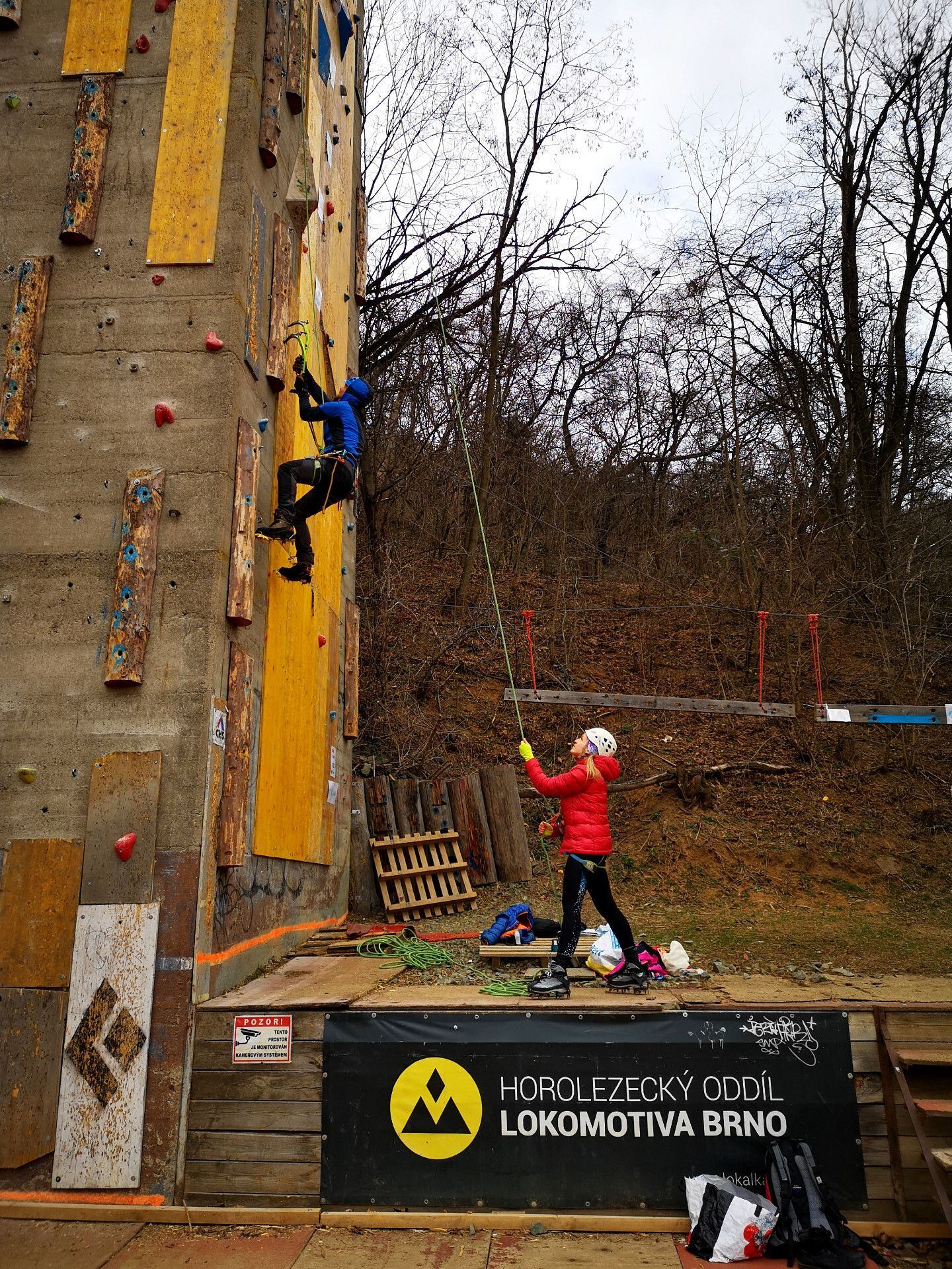 V bundě Rafiki Morena během jištění u drytoolové stěny