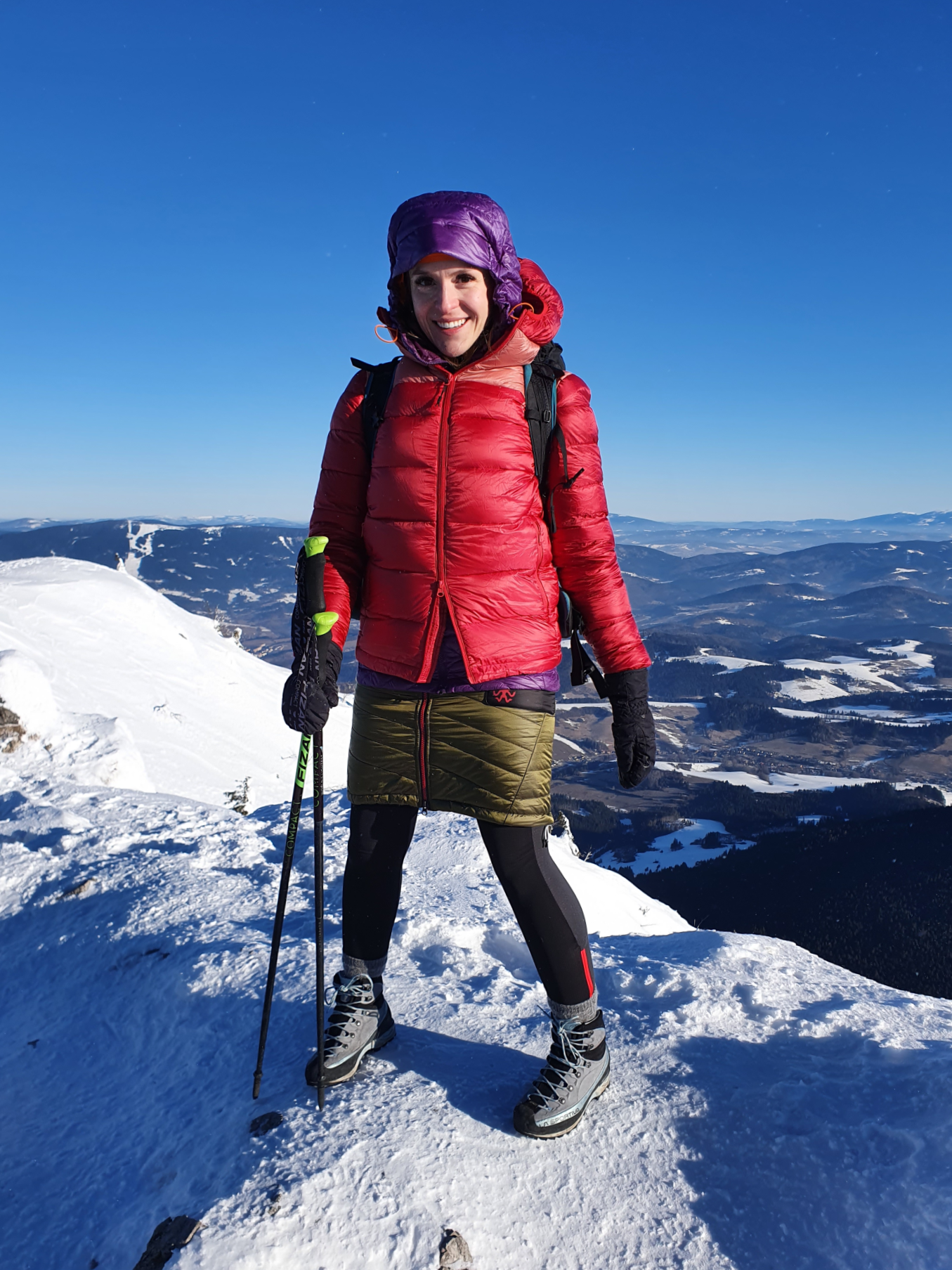 Katka je právnička, průvodkyně v outdoorové CK a horalka s láskou zejména k vertikálním formám pohybu (VHT, lezení, ferraty). Postupně odškrtává ze seznamu alpské čtyřtisícovky, nepohrdne cyklistikou, sjížděním divoké vody, ultratrailem.