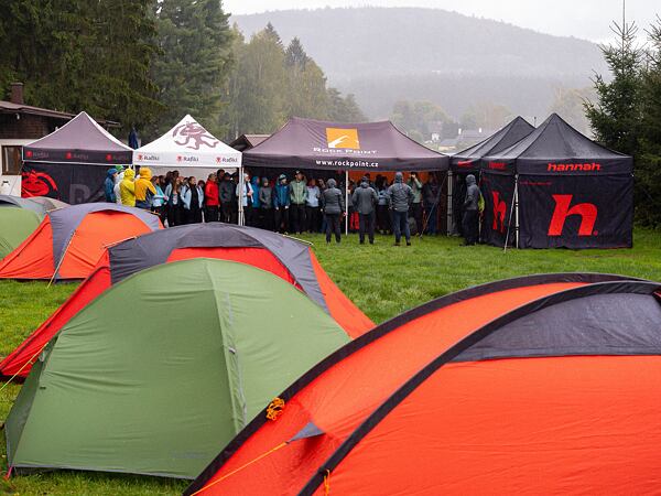 Neustálý déšť sice zmařil lezecké ambice v místní lezecké oblasti Drátník, ale o běh, pořádný turistický výšlap a nocování v dešti se nikdo ochudit nenechal.