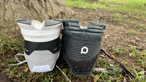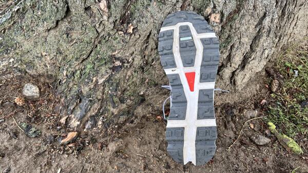 Podešev z Missiongripu má velmi dobrou přilnavost. O její jistotě a stabilitě jsem se přesvědčil na mokrých kamenech i kořenech. Co mě opravdu velice, ale velice mile překvapilo, je jakýsi „samočistící“ efekt podrážky. Uvedu příklad. U modelu On Cloudstratus, které mám jako vycházkové boty, páčím kameny z podrážky každou chvilku. Za celou dobu, co jsem ve Vistách běhal, jsem nemusel nic takového řešit a že těch příležitostí dostaly. Pro srovnání, což je vidět na fotce, mají Visty mělčí a otevřenější středový kanálek a tudíž nedochází k zasekání podrážky kamením.