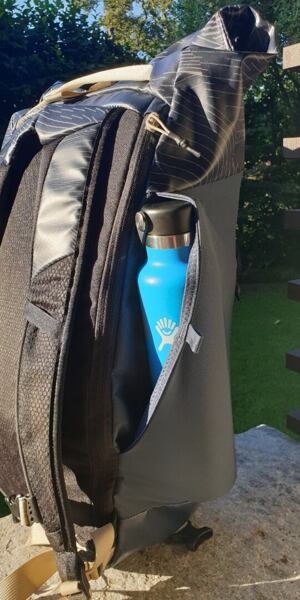 Po stranách batohu jsou 2 velké strečové kapsy pro cokoliv, já je nejčastěji využívám pro láhev na pití