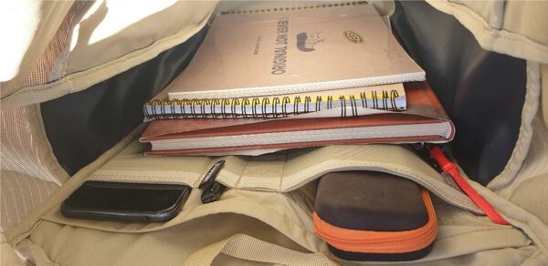 Batoh je opravdu typický svým čistým designem a jednoduchostí. Platí to především pro vnitřní organizér batohu. Batoh rozhodně nepřekypuje množstvím kapsiček, přihrádek a dalších úložišť. Hlavní prostor je tvořený jednoduchým tubusem se 4 malými nezipovými přihrádkami (na tužku, telefon, pouzdro na brýle, či pro další maličkosti ) a karabinkou na klíče.