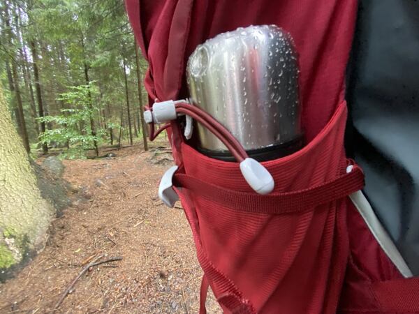 Na bederním pásu ocení každý uživatel dvě zipové kapsy. Osobně využívám jednu na telefon a kapesníky a druhou na nůž a klíče od auta. Nesmím zapomenout i na jedinečnou síťovanou kapsu na přední straně batohu, do které se bez problémů vejde jakýkoliv kousek oblečení, který chcete mít rychle k dispozici, například záložní bunda. Na drobnosti je možné využít i malou síťovanou kapsičku na levém popruhu. V zádové části se nachází kapsa na vodní vak.