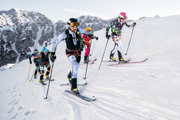 Existuje několik typů závodů ve skialpinismu. Na ultralehkém vybavení se zdolávají dlouhé výstupy, po rutinním bleskovém odlepení pásů a jejich vložení za zip kombinézy následuje sjezd. Žádné kudrlinky, zatáčí se co nejméně a jede se na hranici limitu. Tam kde nestačí lyže, jde se na mačkách, někdy i s podporou cepínu. Borci a borkyně v kombinézách jsou prostě všestranní sportovci.