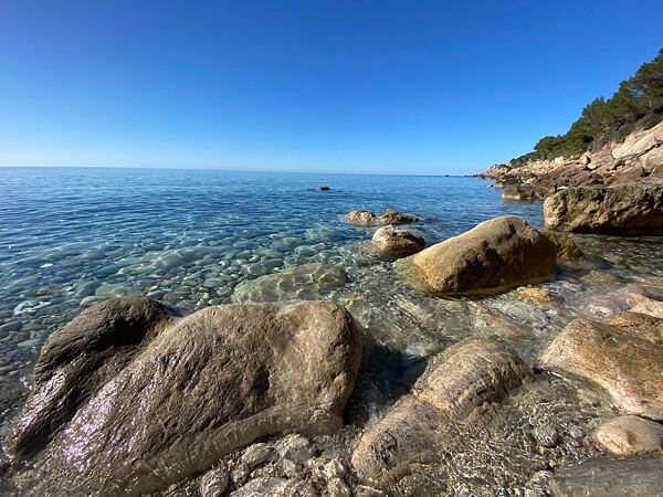 Ráno stíháme bus v 8:50 a s jedním přestupem přejíždíme na start treku do vesnice Sant Elm. První etapa je velmi krátká a seznamovací (13 km / 600 m). Člověk si osahá běh s plně naloženým batohem a také zjistí, jak se kdo z účastníků fyzicky připravil.