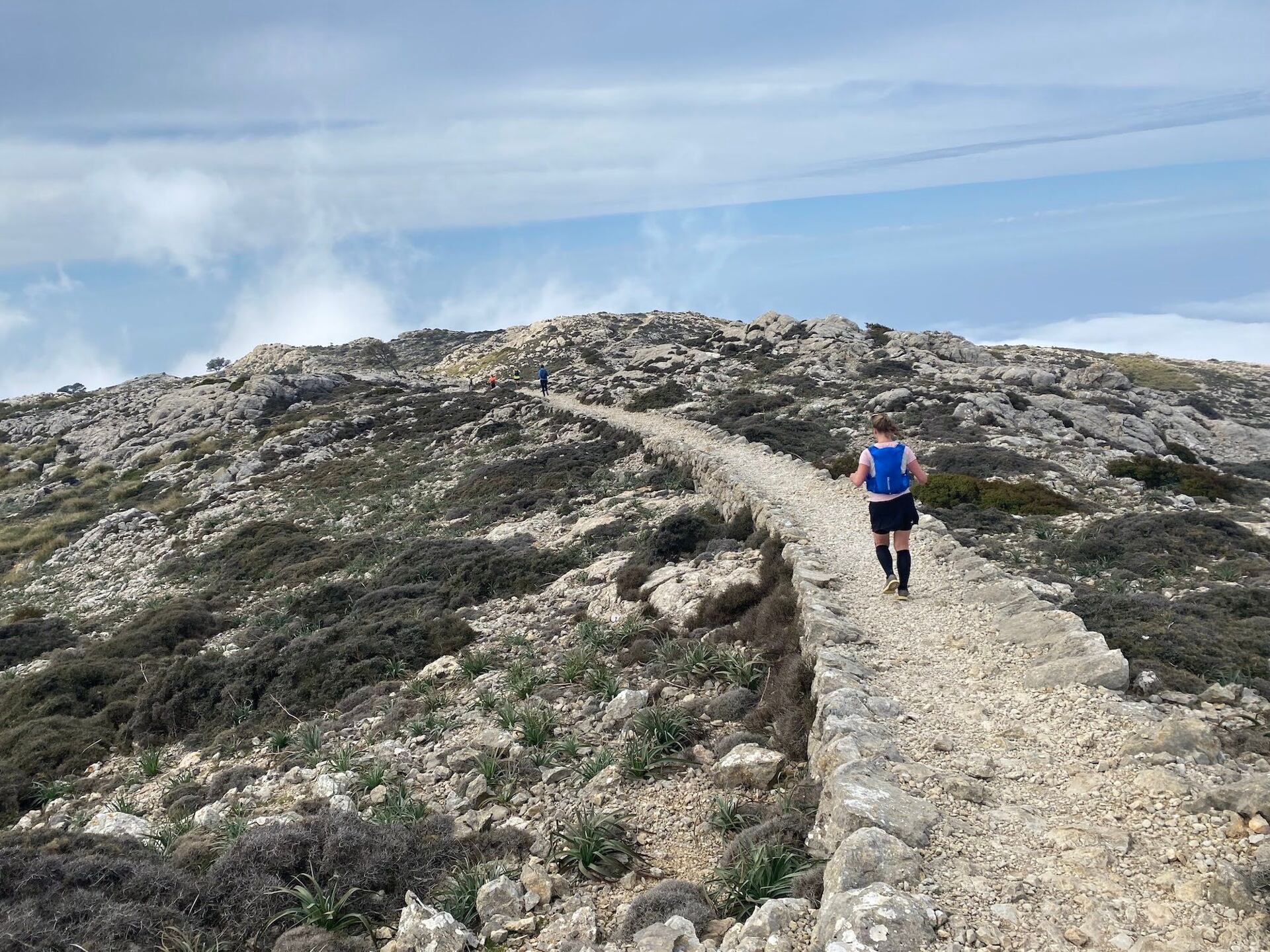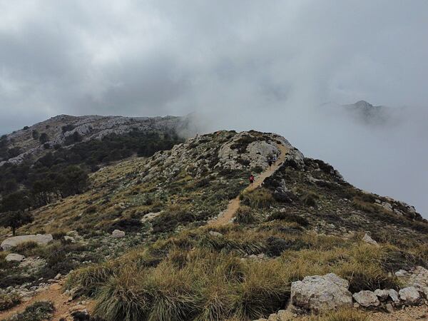 Sbíháme do Valldemossy, kde si dáváme krátkou pauzu na sváču a prohlídku klášterních zahrad a chvilku na to zahajujeme stoupání do nejvyššího bodu dnešního dne. Z běhavého stoupání se postupně stává čím dál tím strmější stojka a odměnou nám je překrásný fotogenický hřeben kolem vrcholu Puig Gros (938 m).