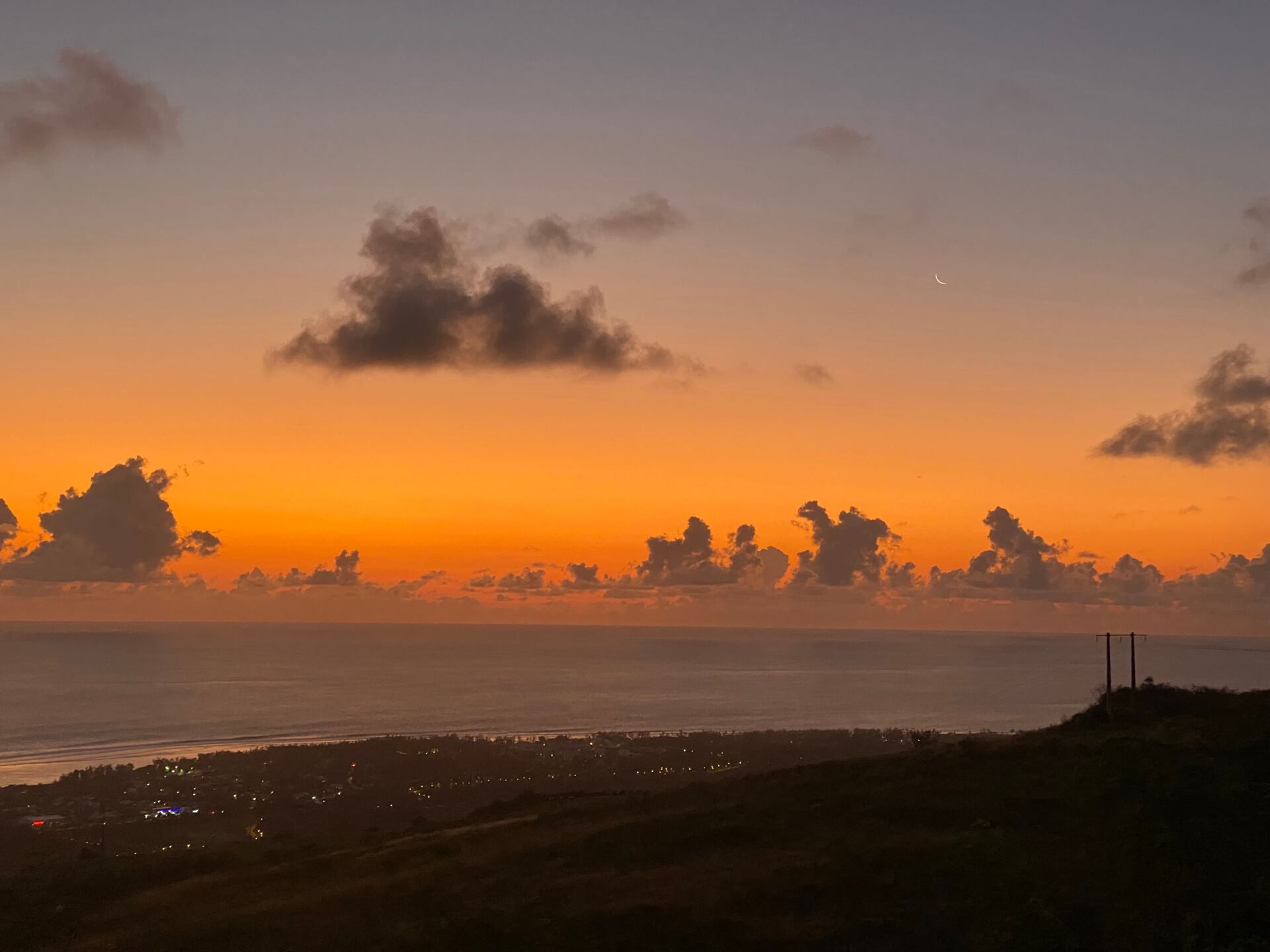 Po pár desítkách minut je mise úspěšně splněna a chvátáme cestou necestou na vrchol sopky Piton de la Fournaise. Máme štěstí a jsme na vrcholu 10 minut před východem slunce. Fouká silný vítr a ačkoliv se nacházíme v tropech, rozhodně nám není vedro. Čekáme na první paprsky slunce jako na smilování boží a po pár minutách pelášíme na snídani zpět od chaty.