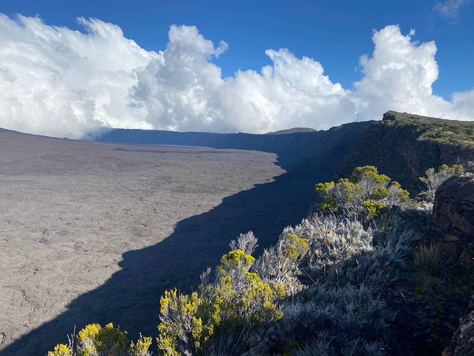 Zpoza mraků na nás totiž postupně začíná vykukovat vrchol sopky Piton de la Fournaise. Jedna z největších sopek světa je aktivní nejméně 530 000 let a naposledy chrlila lávu před 6 lety. Dobíháme k chalupě pod tímto monumentálním vulkánem a odpoledne se jdeme podívat ke kaldeře, odkud si užíváme panoramatický výhled na všechny strany.