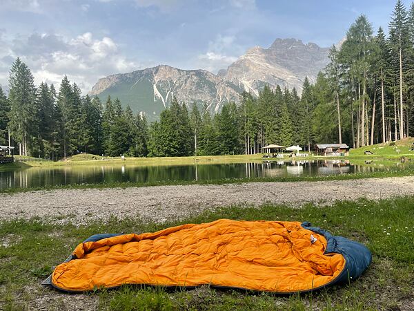 Ke spacáku je kromě kompresního obalu k dispozici také skladovací obal, který je krásně prostorný a peří ve spacáku si tak může zachovat své vlastnosti a nadýchanost na další cestu. Spacák do něj uložím vždy po příjezdu domů. Místo skladovacího obalu lze využít také závěsná poutka v dolní části spacáku.