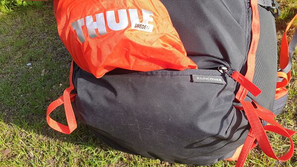 Batoh All Trail 45 l je vybaven pláštěnkou což je sice u takovéhoto typu batohu nezbytná, ale ne vždy standardní součást výbavy. V tomto případě ale není možné nastavení délky obvodu gumičkou. Okraj je sice strečový, ale přišlo mi, že pláštěnka je určená asi i pro větší batohy, a tak je poněkud objemnější než velikost tohoto batohu.