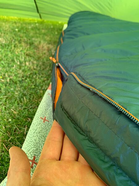Přesto, že jsou dva jezdce na zipu u kvalitnějších spacáků dnes již samozřejmostí, určitě to stojí za zmínku. Když už byla dostatečná zima na to, abych se mohl do spacáku zachumlat, ale potřeboval jsem, aby pořád větral, přišla tato vlastnost vhod. Mohl jsem ho mít zapnutý buď jen v úrovni pasu, nebo jen v úrovni ramena zbytek nechat rozepnutý.