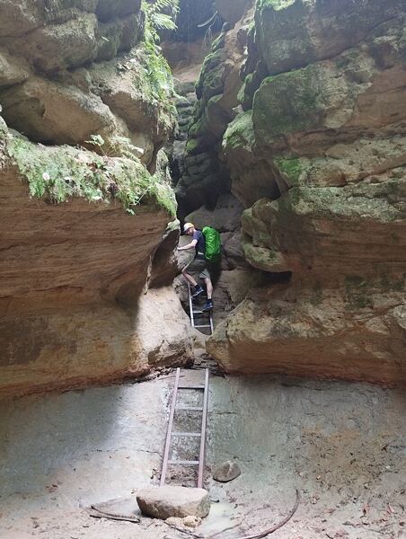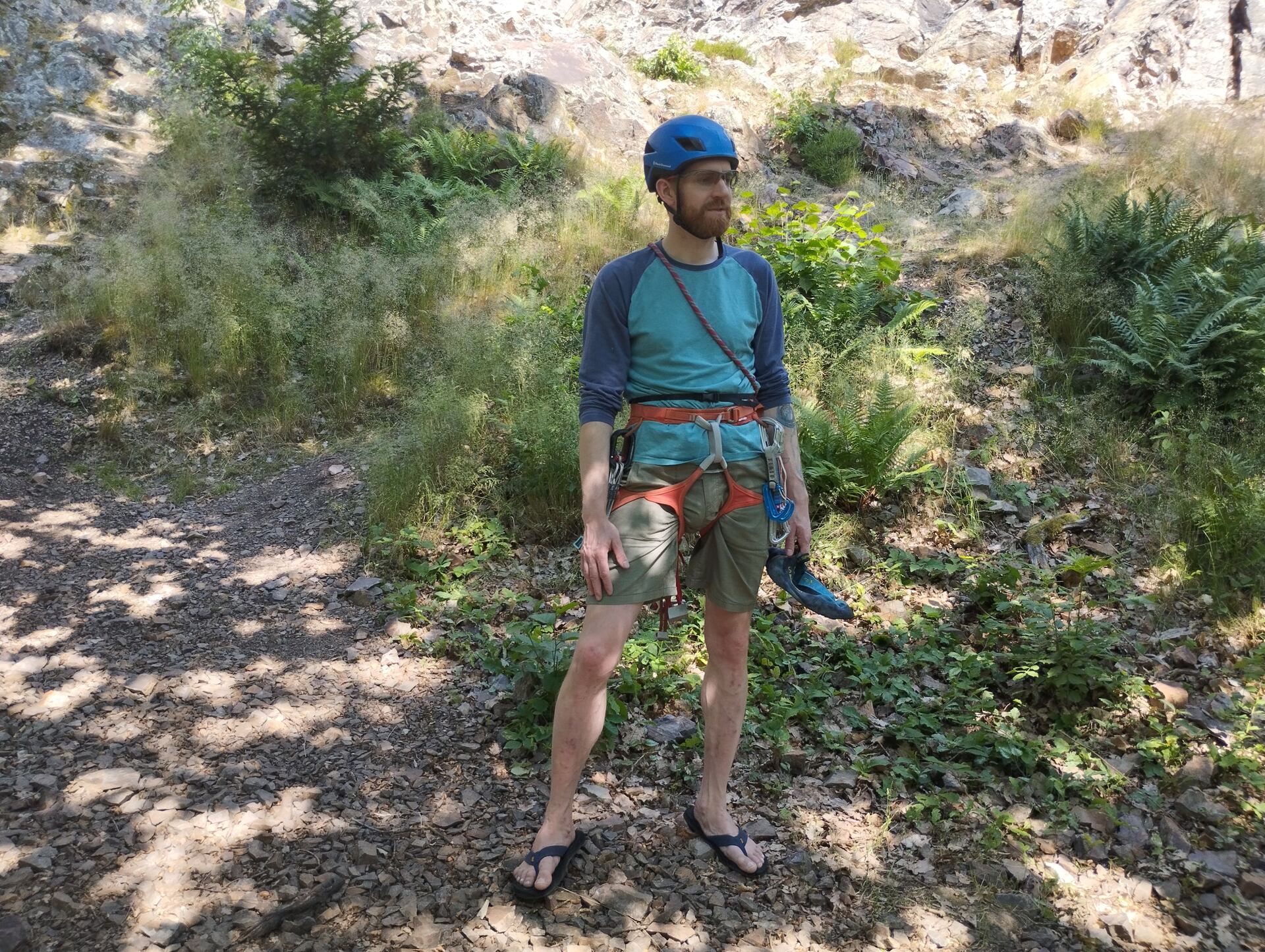 Kraťasy s přehledem daly i lezení na stěně a na skalách.
