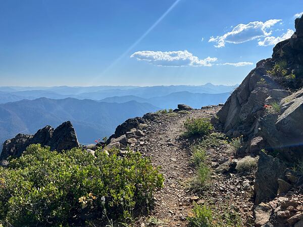 Následovaly krásné vodopády Burney Falls, za kterými už jsme se blížili k velké sopečné hoře Mount Shasta (4317 m n. m.) a stejnojmennému městu, kde jsme strávili jednu noc. Trail v této oblasti vede skrz Shasta - Trinity National Forest a Castle Crags Wilderness, které chci tímto vypíchnout. Bylo to tam nádherné! Dále už následovali jen dvě zastávky před hranicí CA/OR (Kalifornie/Oregon) ve městečku Etna a Seiad Valley. Před druhým jmenovaným městečkem jsem viděl druhého černého medvěda ne moc daleko od trailu.