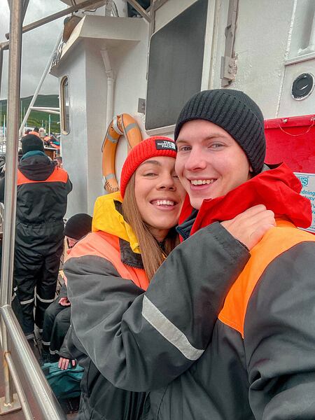 Vybrat si můžete z několika místních agentur, které nabízejí různé typy přepravy, od člunů až po velké rybářské lodě. Samotná plavba zabere cca 2-4 hod. času. My zvolili variantu větší lodi s 3hodinovou plavbou za cca 1500 Kč. Hned na začátku jsme vyfasovali nepromokavé, zateplené kombinézy, které jsme později ocenili.