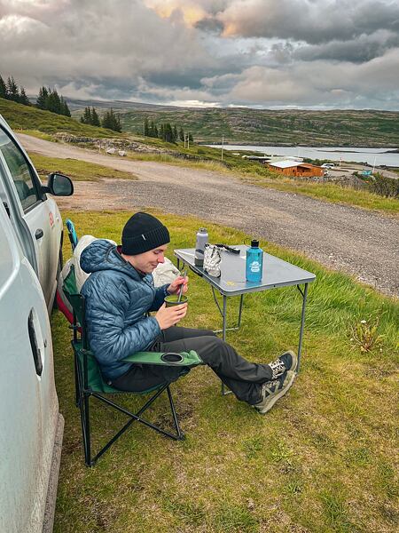 Večer nás zachránilo jídlo od Adventure Menu. Tenhle typ jídla s sebou určitě doporučuji, a to nejen pro nízkou gramáž, která se při cestování více než hodí, ale i pro dlouhou trvanlivost, jednoduchost přípravy a výbornou chuť. V kombinaci s Jetboilem a nádobím od Sea to Summit posunete kempování do totálního komfortu. Když se k tomu všemu přidá výhled na fjordy, máte najednou pocit, že ani v pětihvězdě by nebylo lépe.