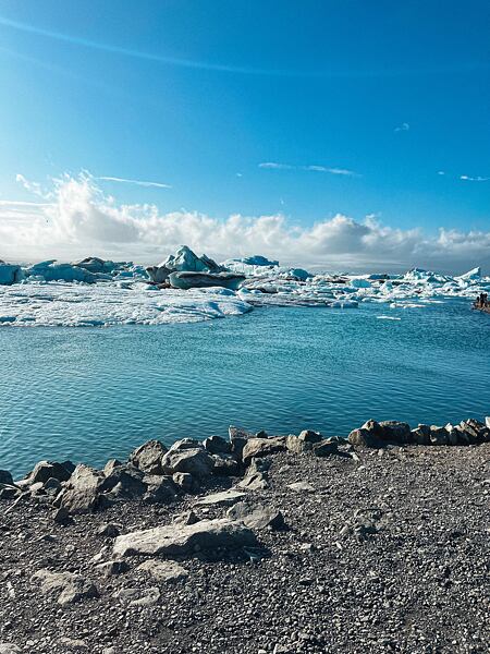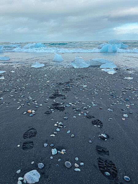 Díky jeho tání způsobenému globálním oteplováním, se jeho rozloha neustále zvětšuje. Za posledních 50 let až 4x. Strašidelné. Prošli jsme to tu křížem krážem, tam a zpátky a kdybychom měli jen o trochu víc času, zkusili bychom i kajaky, které tu nabízí. Hned naproti laguně se nachází další z islandských „must-see“ - Diamantová pláž. Ani tu jsme tentokrát nevynechali. Jde o černou sopečnou pláž posetou stovkami ker, které sem doplují z laguny.