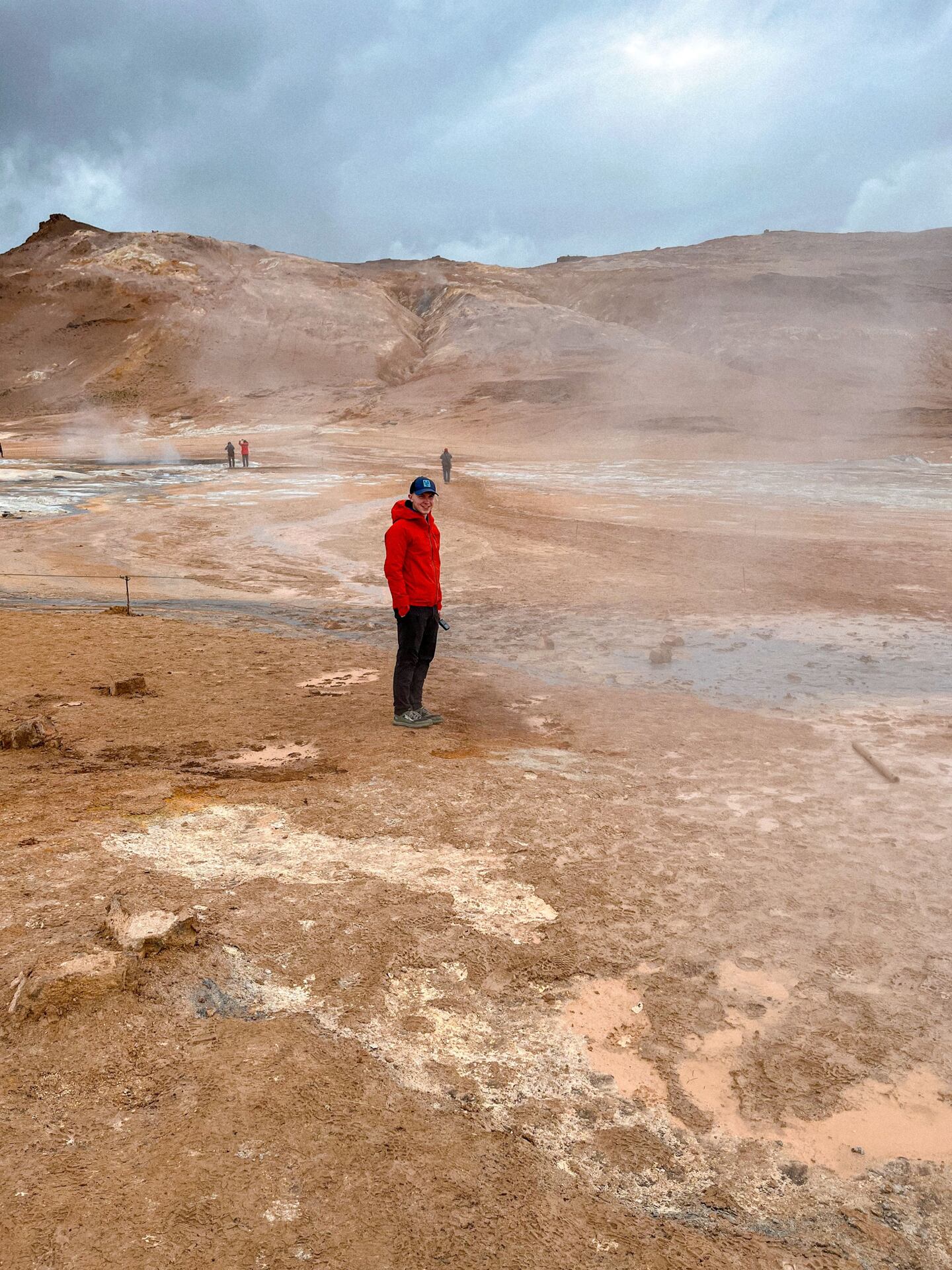 Jedeme zase o kus dál k jezeru Mývatn. Tady najdete v podstatě celý Island - geotermální prameny, jeskyně, vodopády i sopky. My jsme se těšili především na sirné pole Hverir, které nám svým zápachem připomnělo loňský Laugavegur. Ve chvíli, kdy stojíte mezi bublajícími bahenními jezírky, dýmajícími fumarolami a koukáte na okolní oranžovou krajinu, máte najednou pocit, že jste na jiné planetě.