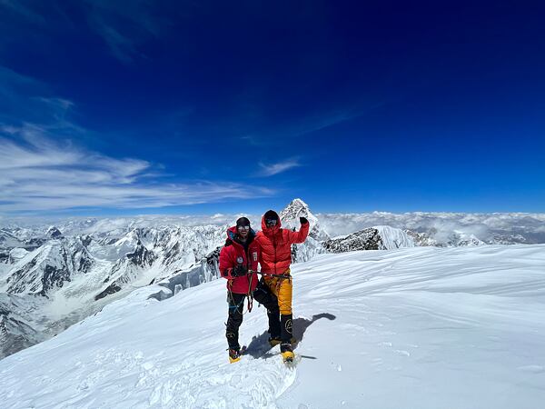 Já (Pavel Burda) spolu s Martinem Ksandrem kráčíme bohapustou ledovcovou krajinou a povídáme si, jací jsme borci, že jsme zase ten kopec přemluvili, aby nás oba pustil na svůj vrcholek. Navíc bok po boku. Ještě s námi na vrchol vystoupil Jožo, abych byl přesný. Přestože jsme vyčerpaní, oběma nám je jasné, že patrně v těchto končinách nejsme naposledy. Tento zapadlý kout zeměkoule totiž na velmi malé rozloze rozprostírá hned další tři osmitisícovky, a to nenechá chladným nejedno horolezecké srdce…
