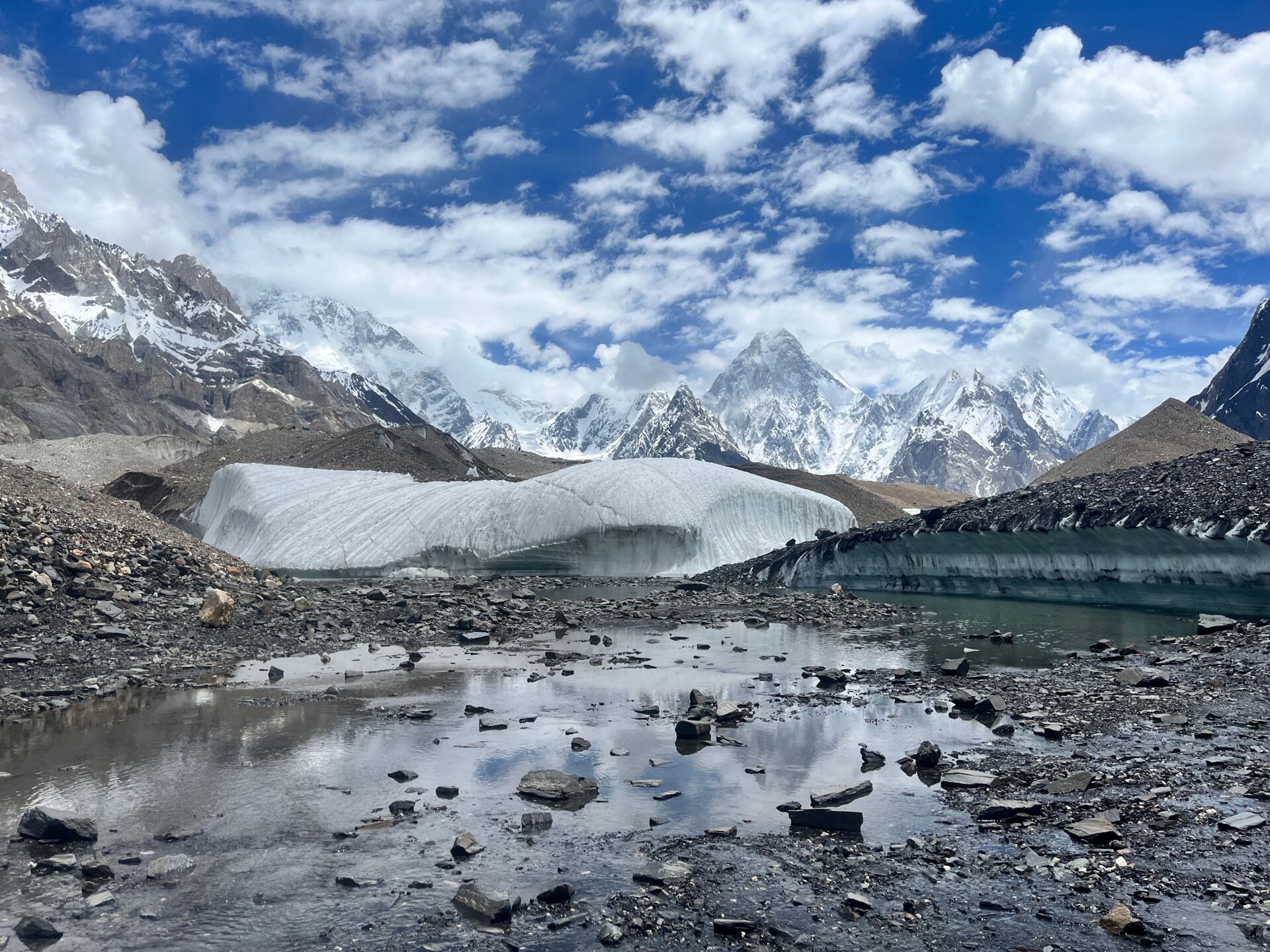 Docházíme do místa zvaného Concordie. Poprvé odsud spatřujeme majestátní K2. Hned vedle Broad Peak. Cíl trekové skupiny víceméně splněn. O pár dní později se celá naše devítičlenná horolezecká expedice slézá v základním táboře pod Broad Peakem. Jsme kupodivu v plném počtu a v plné síle.